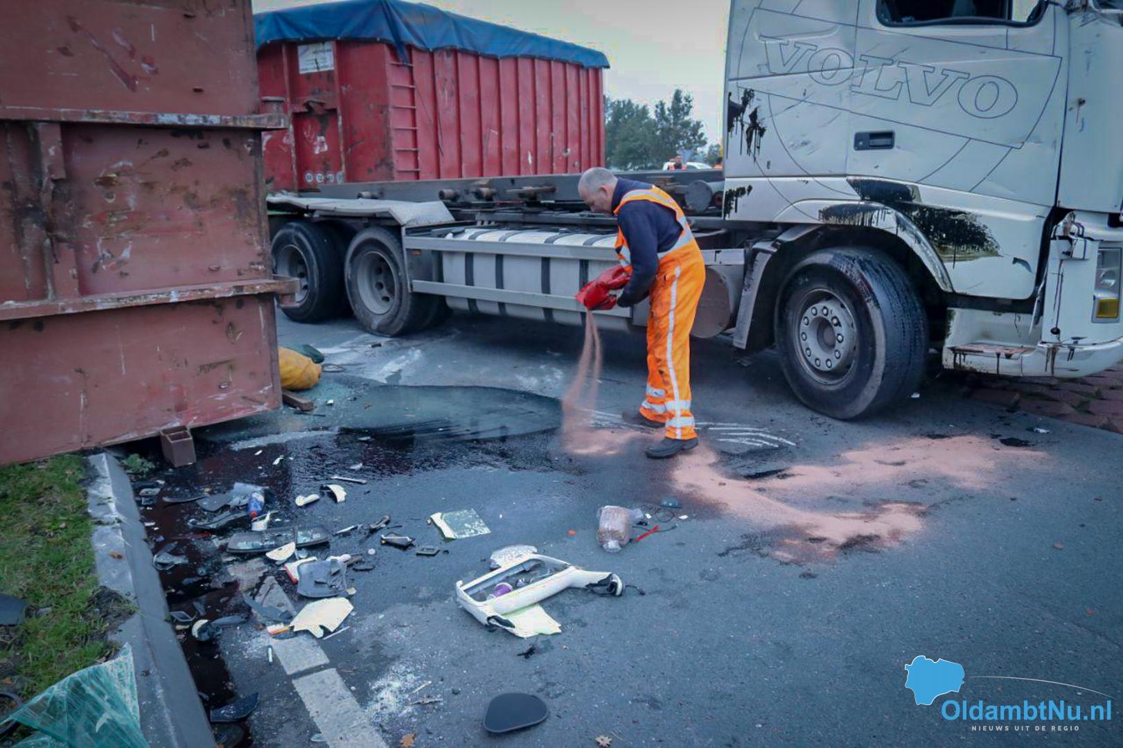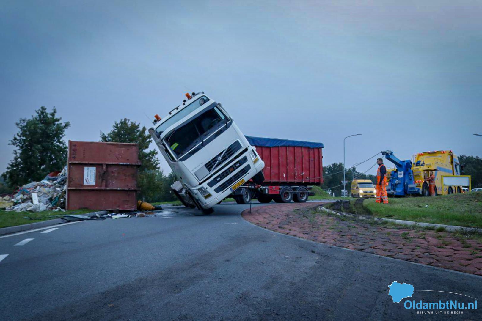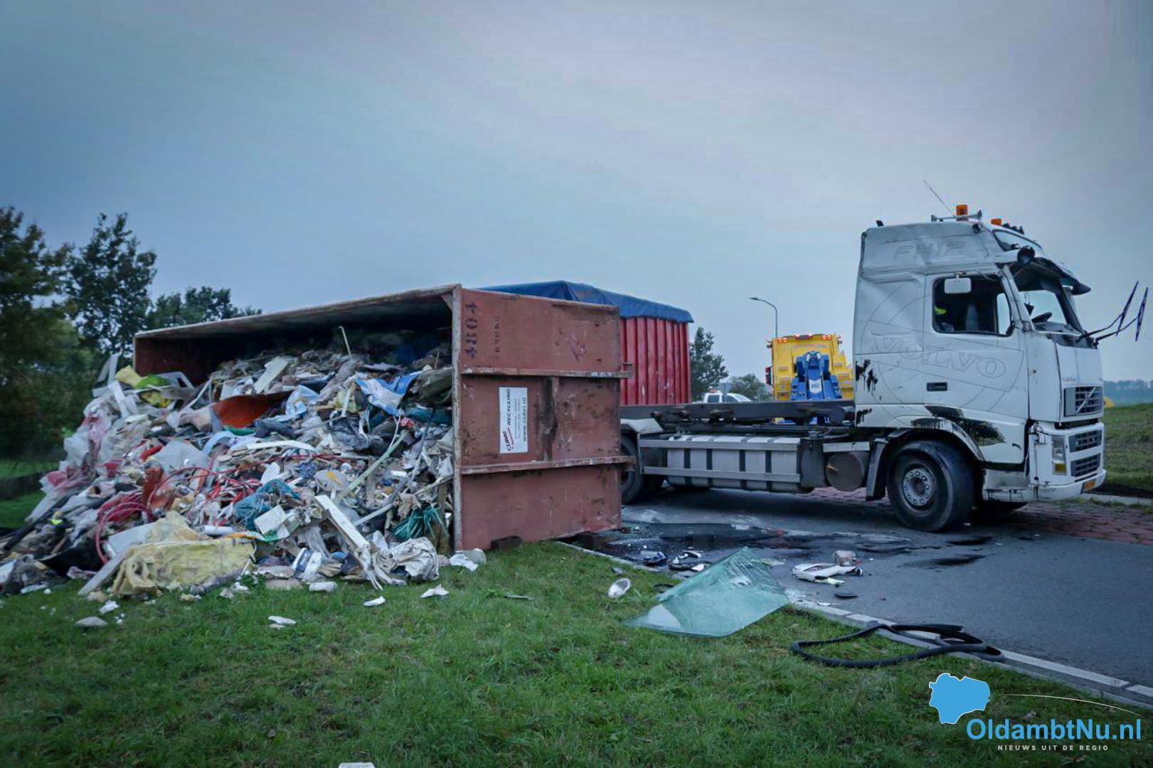 Bergingsbedrijf Poort uit Hoogkerk is met zwaar materiaal bij het incident aanwezig en heeft de vrachtwagen weer op de wielen gezet. Rond het middaguur zal een ander bedrijf de containers inclusief het afval opruimen.