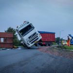 Scheemda – Vanwege een gekantelde vrachtwagen op de N362 ter hoogte van het voetbalveld in Scheemda blijft de rotonde op de N362 nog zeker tot het middaguur gestremd.
