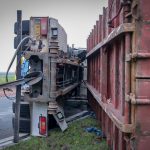 Vanochtend rond een uur of zes kantelde een vrachtwagen door nog onbekende oorzaak. Hierbij raakte een persoon gewond.