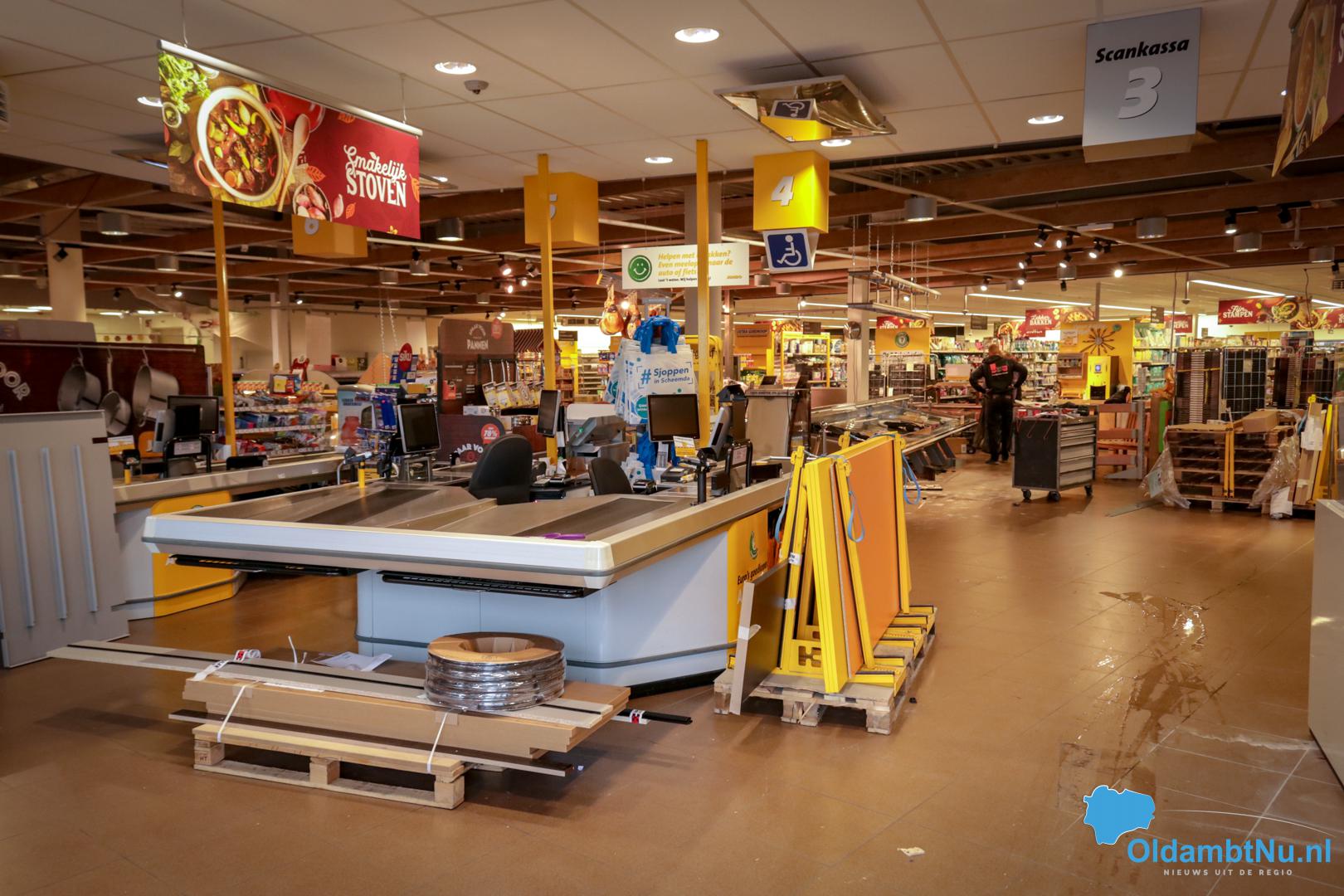 Het groente en zuivel plein wordt in ieder geval grondig aangepakt. De supermarkt in Scheemda opent haar deuren op donderdagochtend om 08:00 weer voor winkelend publiek.