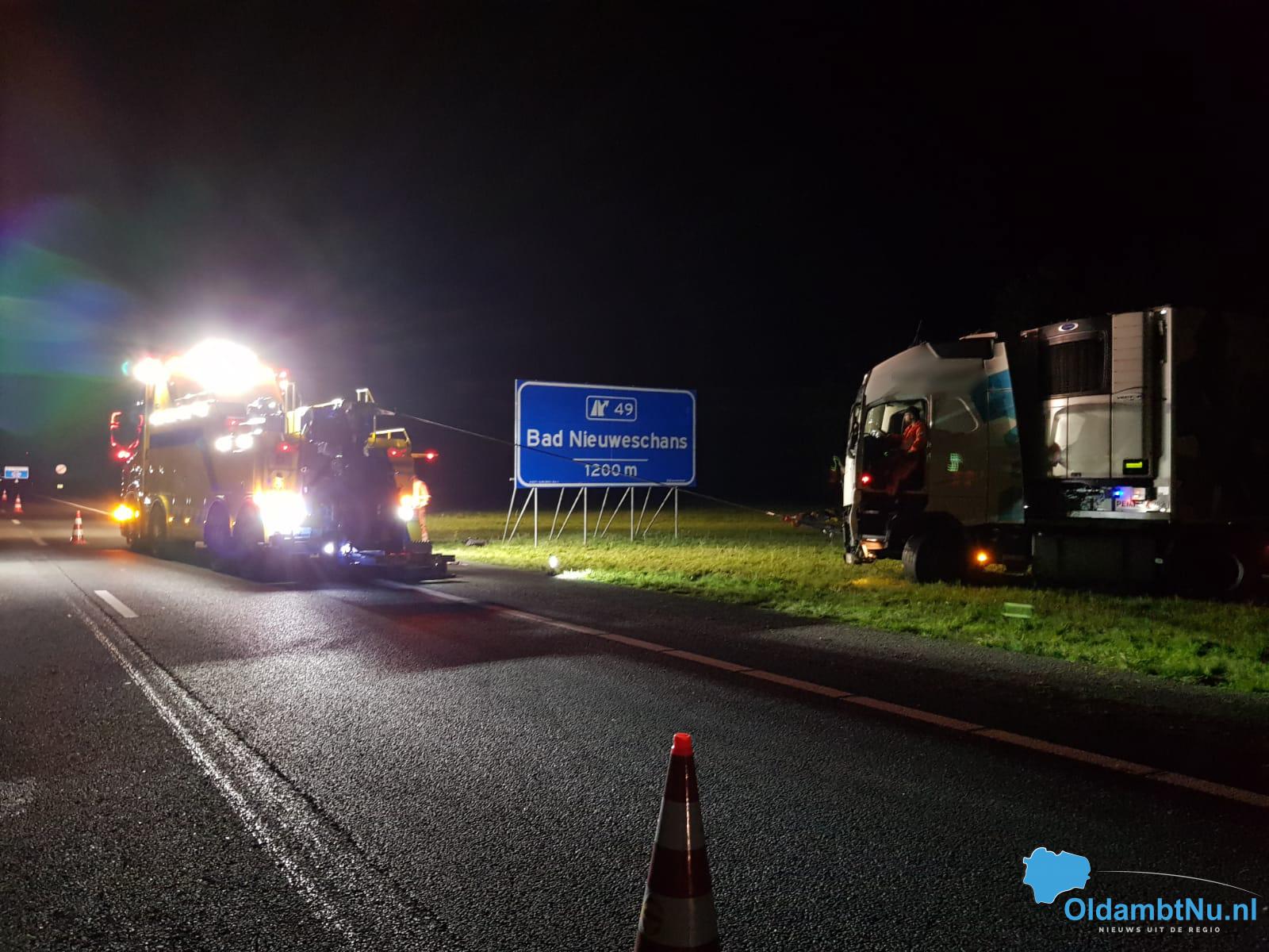 Vrachtwagen raakt naast de A7 bij Bad Nieuweschans