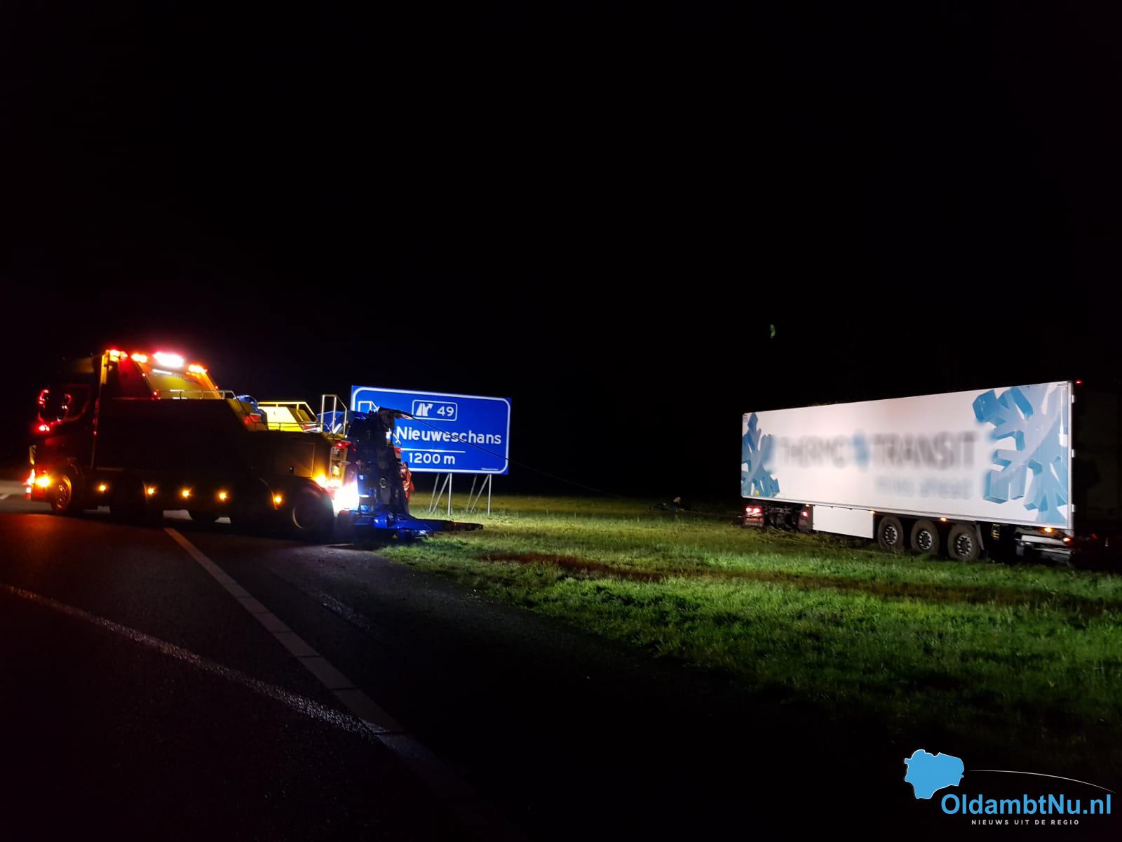 Bad Nieuweschans – In de nacht van vrijdag op zaterdag is een vrachtwagen naast de A7 terecht gekomen ter hoogte van Bad Nieuweschans. Dat meldt incidenten-website 112Groningen.nl.