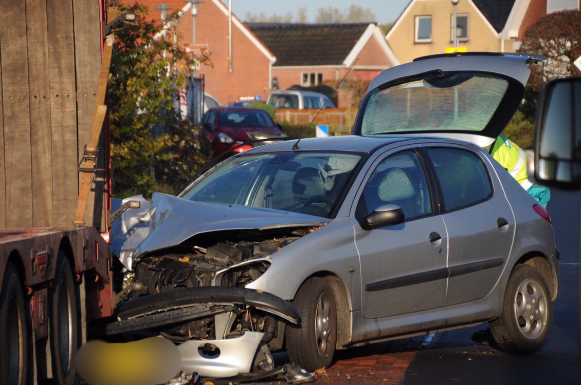 De bestuurder is voor de zekerheid door ambulancepersoneel gecontroleerd. Hij hoefde niet mee naar het ziekenhuis. Een berger kwam om de auto onder de vrachtwagen vandaan te halen.