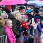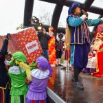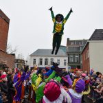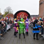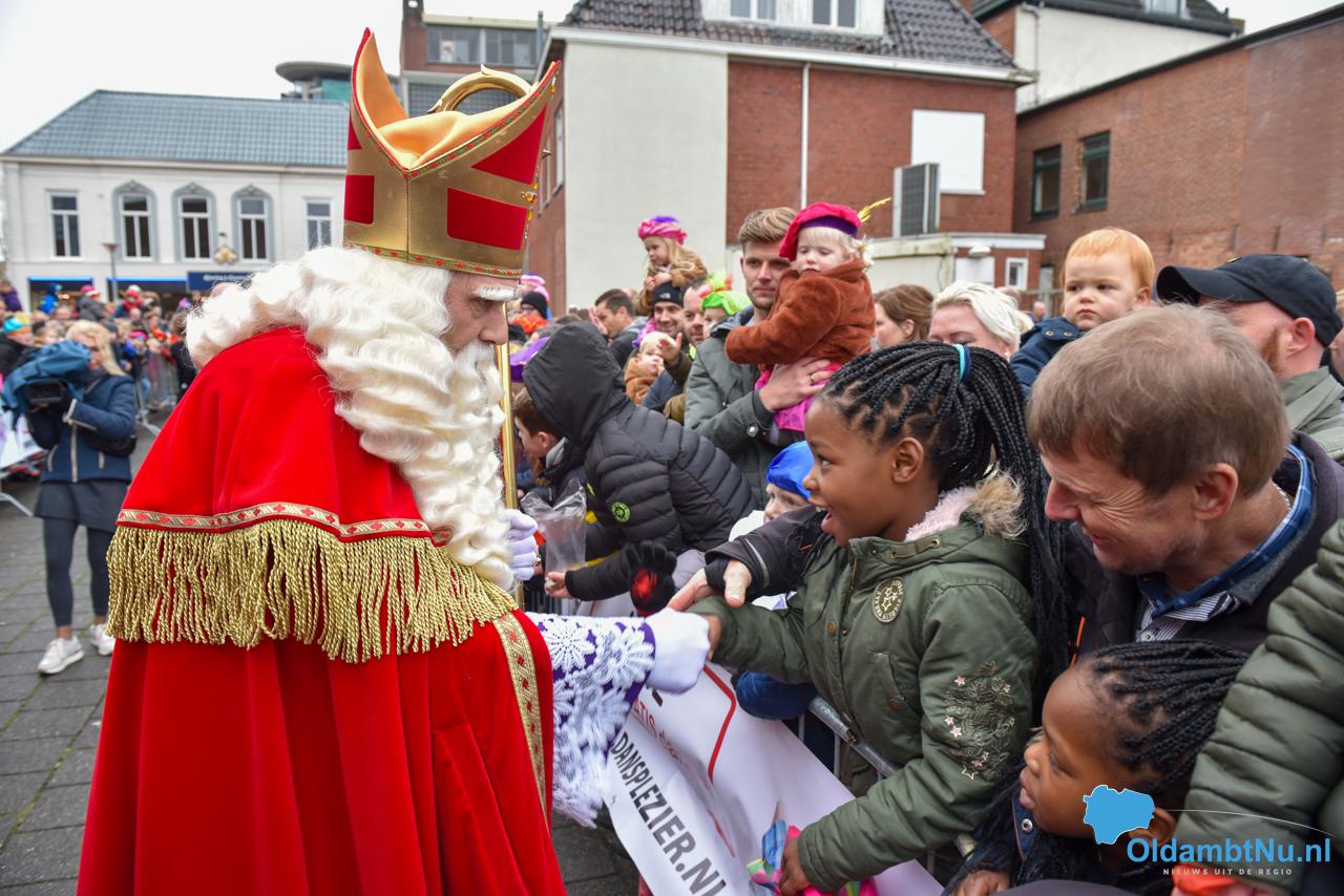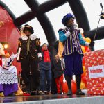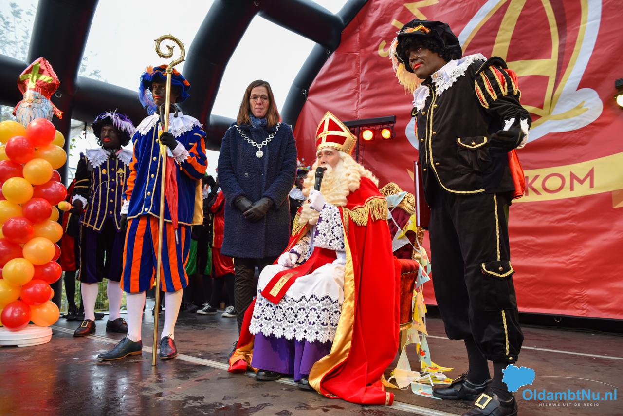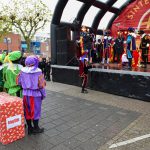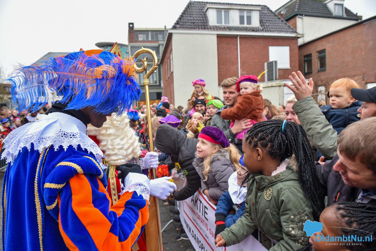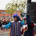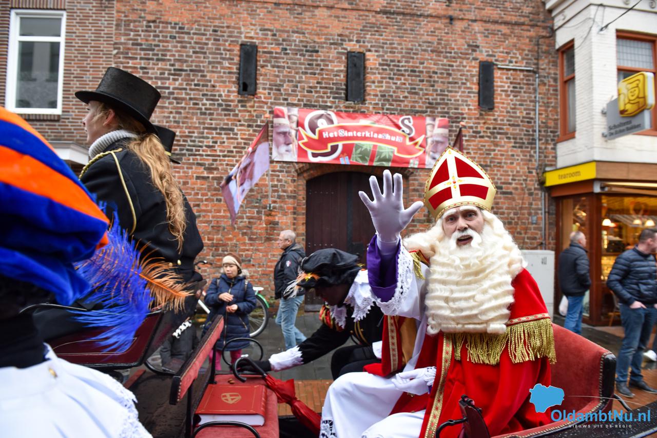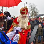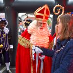 Vanaf de haven ging Sinterklaas in een koets en met een grote stoet Pieten verder naar de Langestraat. Naast de Hema verwelkomden burgemeester Cora-Yfke Sikkema en Martin Zemering de Sint.
