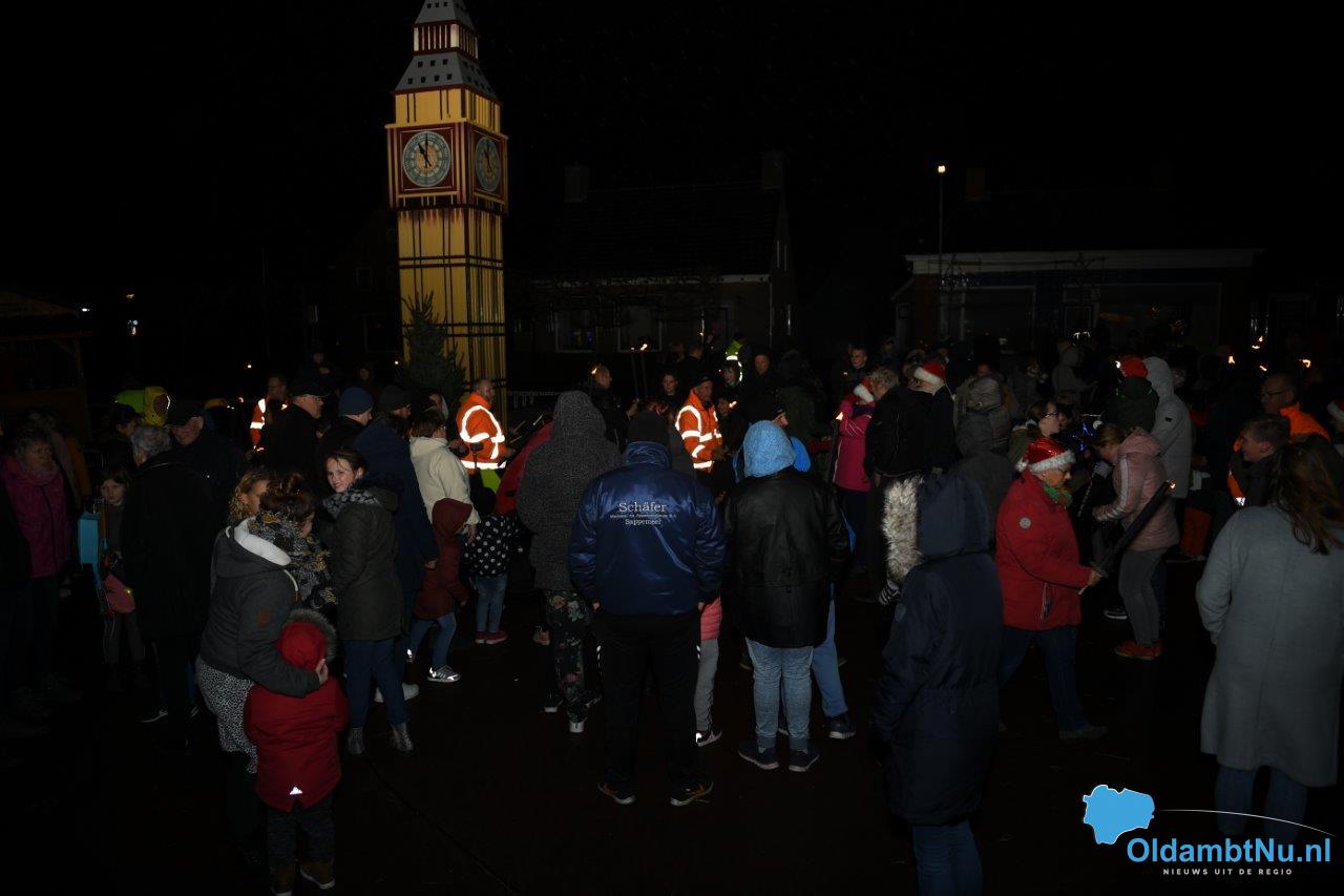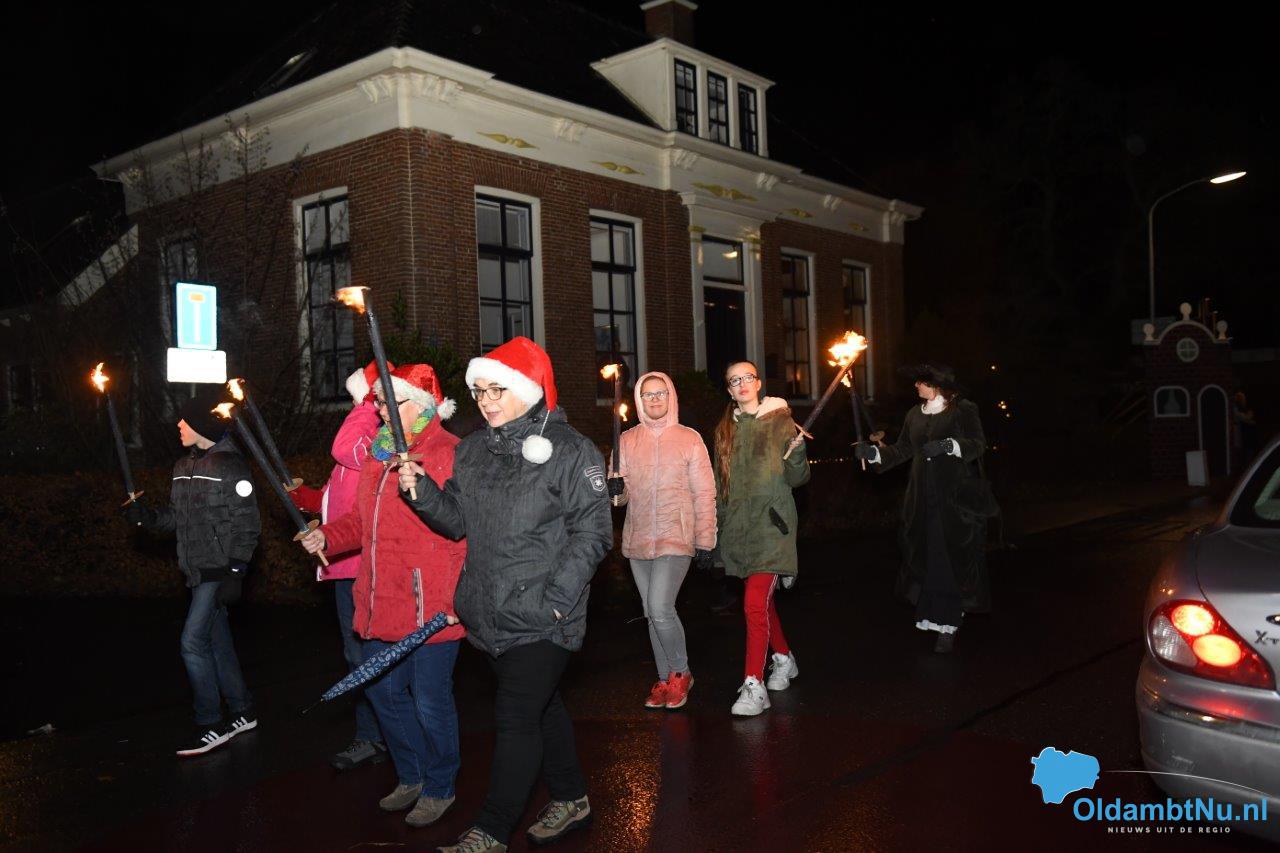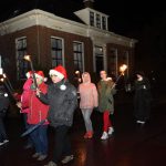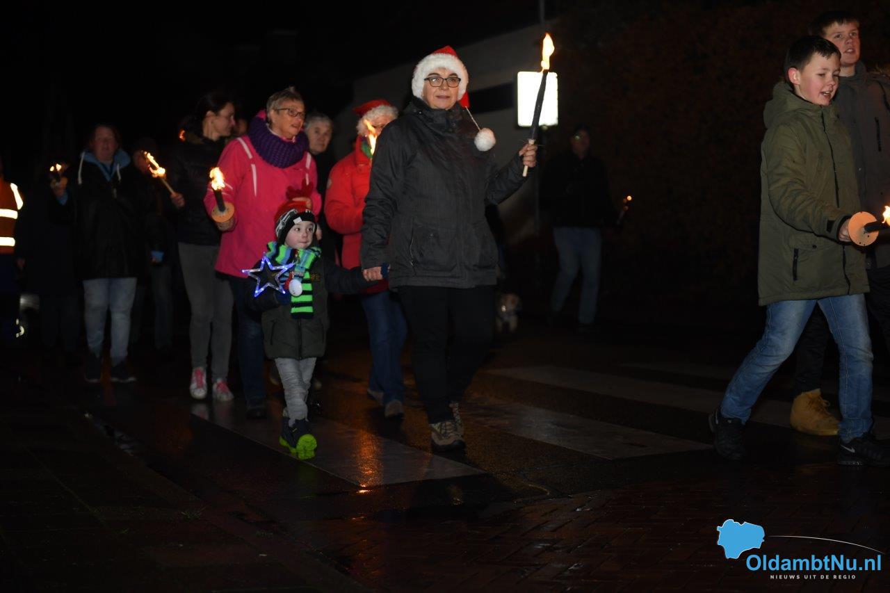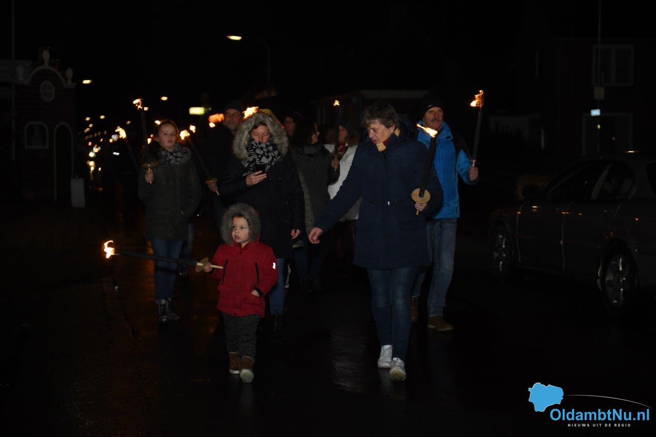 Om 19.00 uur begon de fakkeloptocht onder begeleiding van muziek. Lange rij bewoners van oud en jong liepen mee met deze sfeervolle wandeling. De tocht eindigde op het Vredesplein met muziek. Ook was er koffie, warme chocolademelk en glühwein verkrijgbaar. Kortom: Een gezellige wandeling.