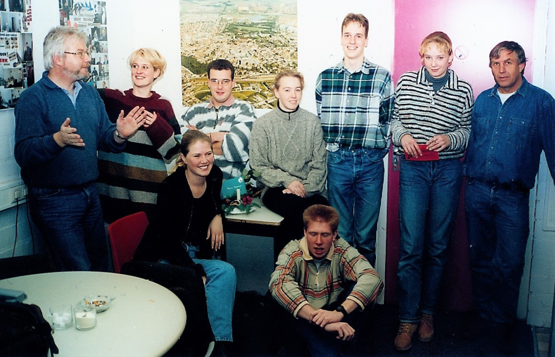 De laatste foto in deze editie betreft een van de kinderprogramma’s van Radio Winschoten, dat werd uitgezonden onder de naam “De Stoute schoentjes”. Op de foto de makers van dat programma Jeanette Busscher, Annet Goretzki en Erwin Brouwer en een deel van grote groep luisteraars.
