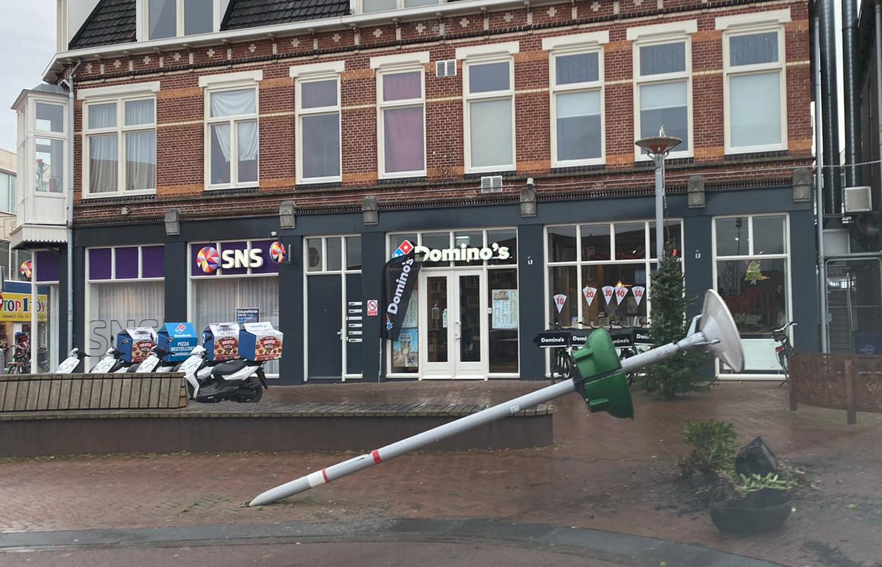 Winschoten – Het Oldambtplein in Winschoten heeft momenteel een lantaarnpaal minder. Maandagmiddag zag een chauffeur vermoedelijk tijdens het achteruit rijden de paal met de lamp en bloembakken over het hoofd.