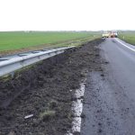 Scheemda – De afrit van de A7 bij Scheemda is momenteel door Rijkswaterstaat afgesloten. Op de afrit ligt een hoop modder, dit is ontstaan door een vrachtwagen die door de berm is gereden.