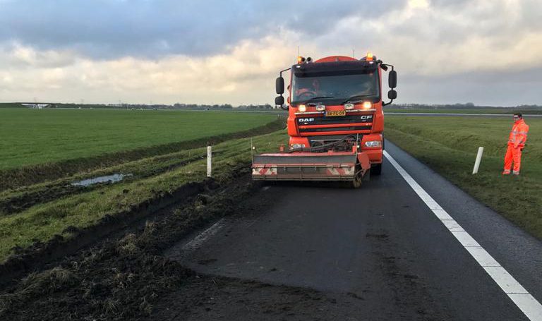 Scheemda – De afrit van de A7 bij Scheemda is momenteel door Rijkswaterstaat afgesloten. Op de afrit ligt een hoop modder, dit is ontstaan door een vrachtwagen die door de berm is gereden.