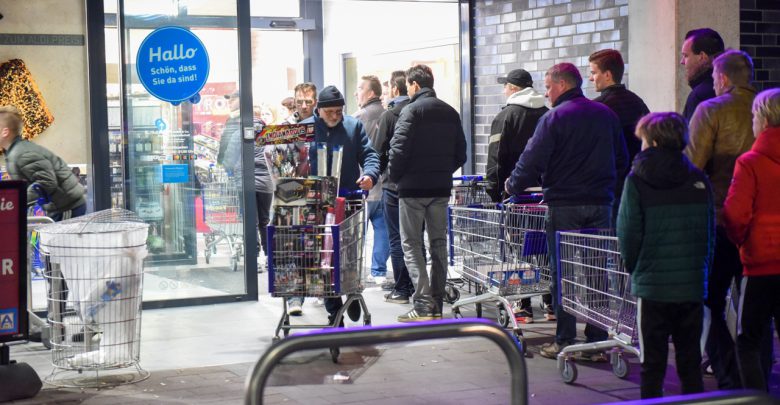 De vestigingen van Aldi en Lidl in het Duitse Bunde, net over de grens bij Bad Nieuweschans, zijn populair. Veel Nederlanders slaan daar hun slag. Om 07.00 uur zaterdagochtend stonden er forse rijen voor de supermarkten. Wie na het lezen van dit bericht bang is achter het net te vissen heeft het mis, de supermarkten hebben doorgaans voldoende voorraad om de gehele verkoopperiode vuurwerk in de schappen te kunnen leggen.