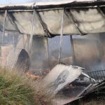 De brandweerlieden konden veilig een grote fles verwijderen bij de brand, wat er in de fles zit is niet bekend. Brandstichting wordt niet uitgesloten.