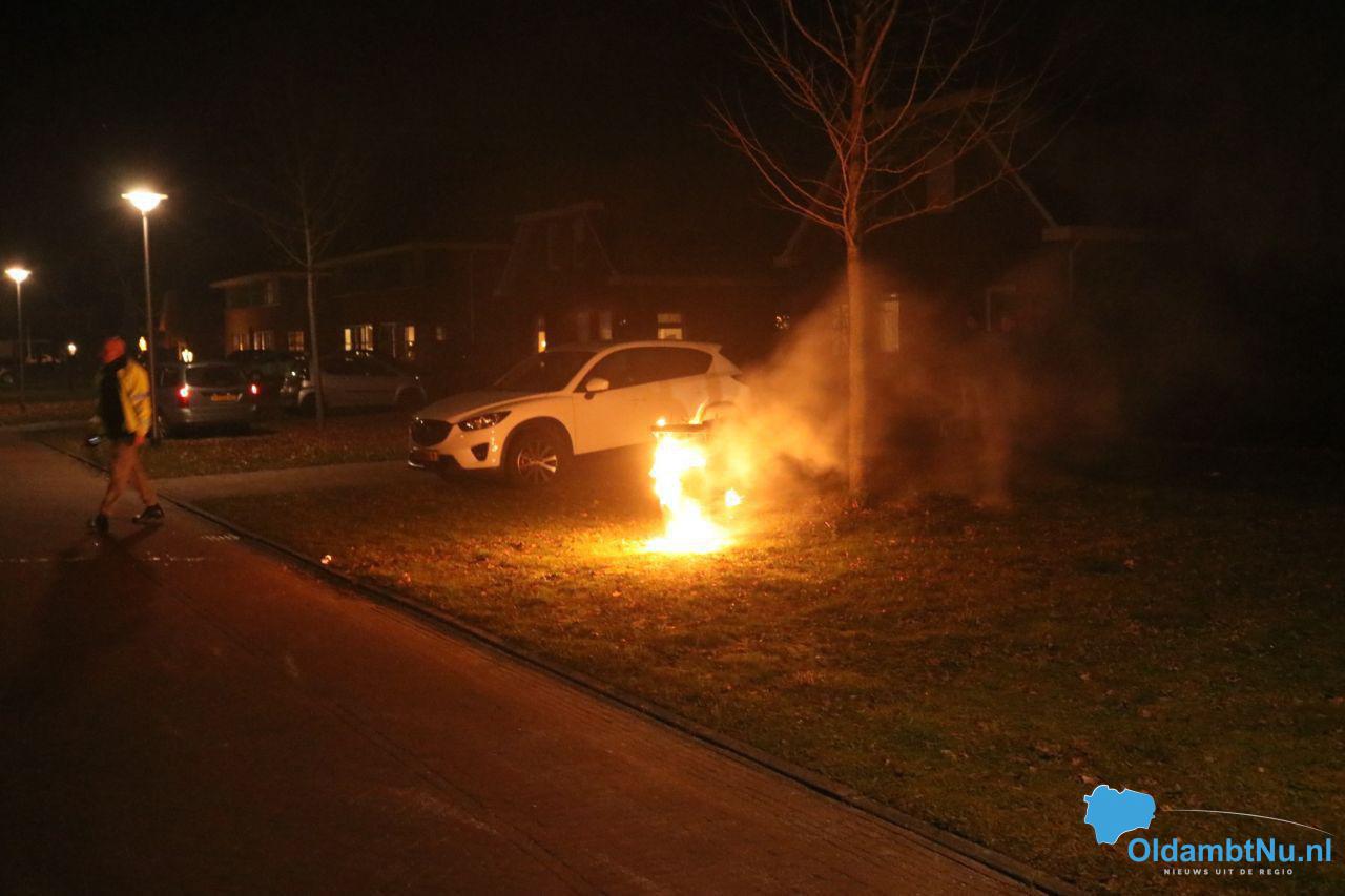 De met spoed gealarmeerde brandweerlieden hebben de container en de coniferen afgeblust. Door snel optreden van buurtbewoners kon erger worden voorkomen. Hoe de brand is ontstaan is nog niet bekend. Mogelijk is vuurwerk de oorzaak.