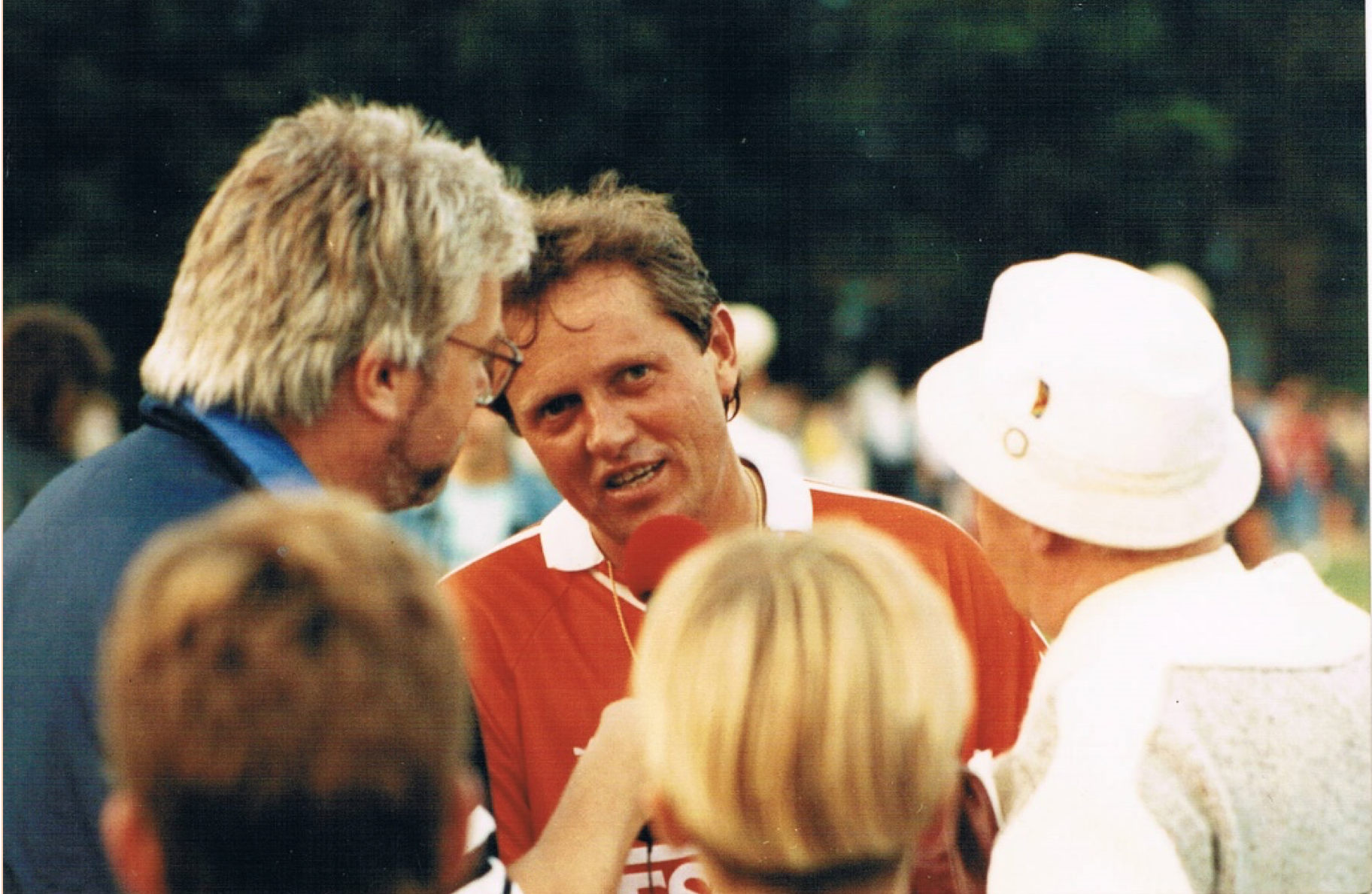 Nog een belevenis waar helaas geen foto’s van zijn, maar die nog wel in onze herinnering gegrift staat. Het betreft de uit Finsterwolde afkomstig Arie Haan, op dat moment nog werkzaam als trainer bij Stuttgart in Duitsland. De geruchten gingen dar Arie zou tekenen bij het Rotterdamse Feijenoord, maar niets was nog zeker. Op de bewuste zaterdagmiddag was boezemvriend van Arie Haan, Winschoter Jacques Kats, naar Stuttgart afgereisd om Arie waar nodig bij te staan in zijn keus.