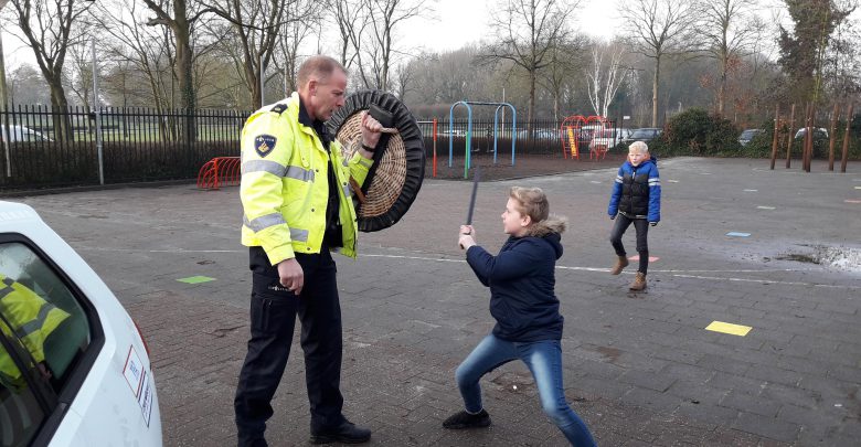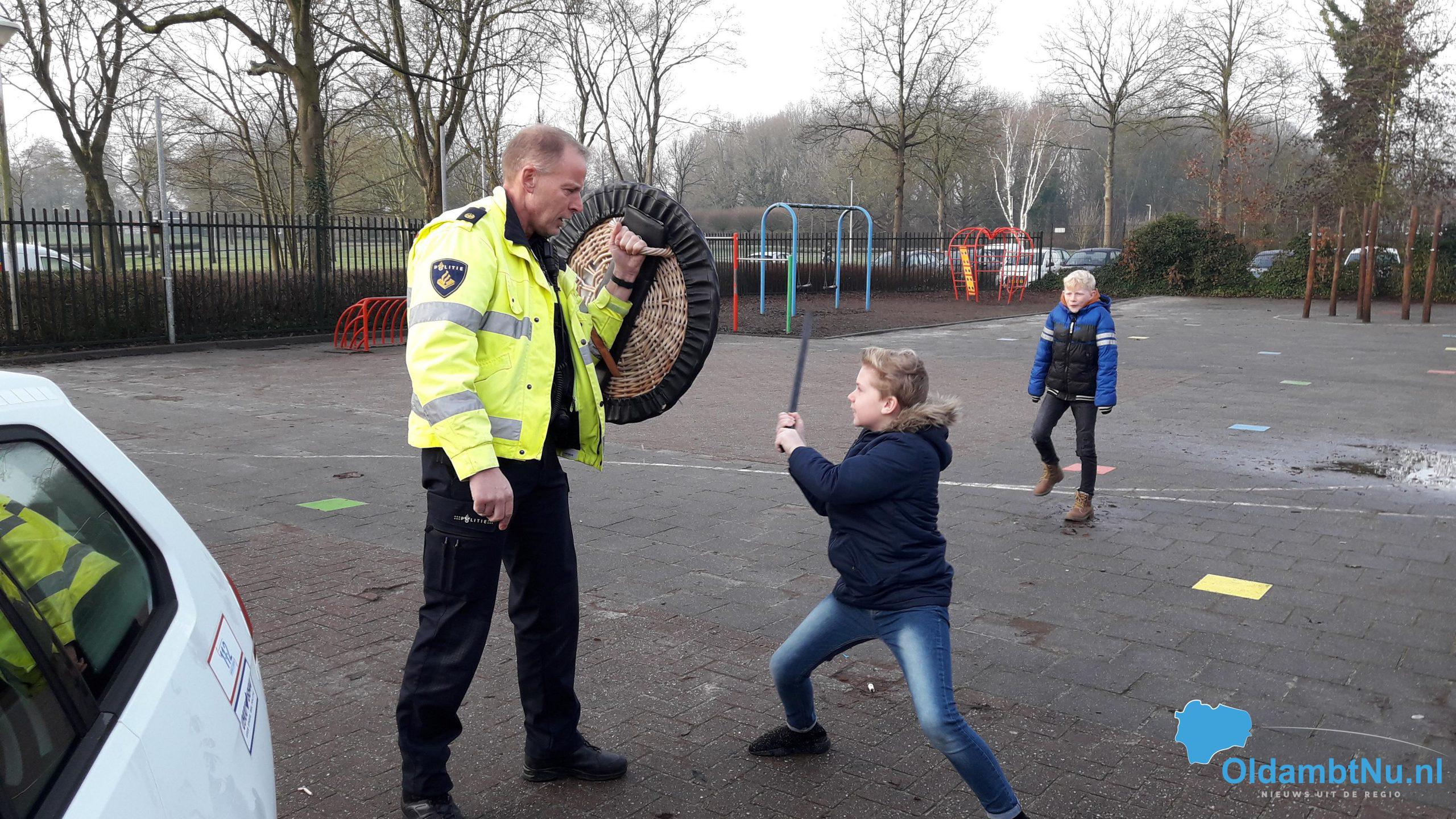 Leerlingen hadden enorm veel vragen voor de gastdocenten, bijvoorbeeld of ze zelfs wel eens iets strafbaars hadden gedaan. Daarna gingen ze zelf bezig. Ze speelden een situatie bij Halt na, namen een kijkje in de brandweerauto en mochten op het ME-schild slaan met de wapenstok. Al met al geslaagde lessen. Voor de komende tijd staan de thema’s techniek, recht, horeca en dier & natuur op het programma.