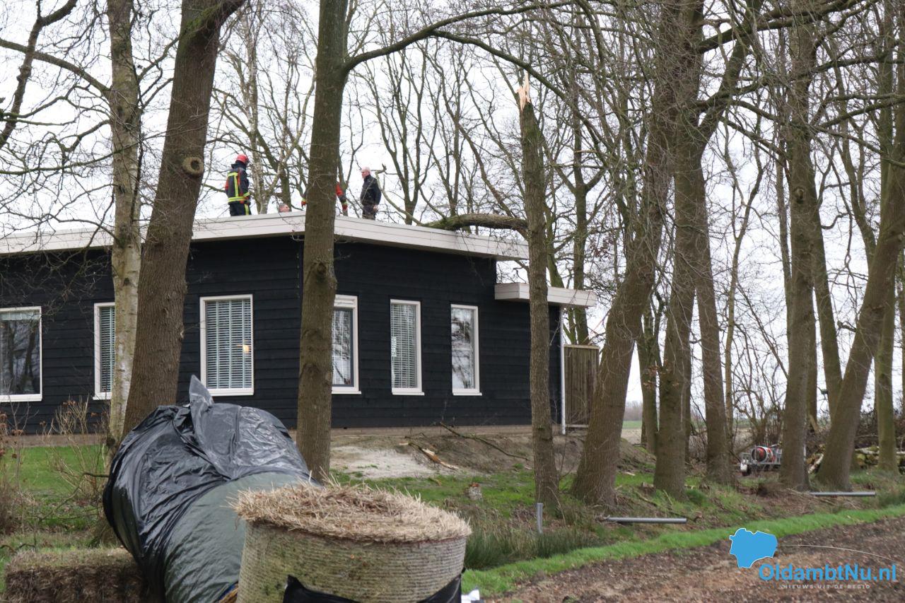 Winschoten – Aan het Zuiderveen zijn een aantal dikke takken van de bomen gewaaid en door het dak van een woonhuis gegaan. Met behulp van de brandweer zijn deze verwijderd waarna het dak gerepareerd kan worden.