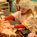 De basisschoolleerlingen kregen zelf ook allemaal een witte doktersjas aan, zodat ze de coassistenten konden helpen bij het ‘beter maken’ van hun knuffels. Vol enthousiasme gingen de kinderen aan de slag, ondertussen nieuwsgierig vragen stellend aan de coassistenten.