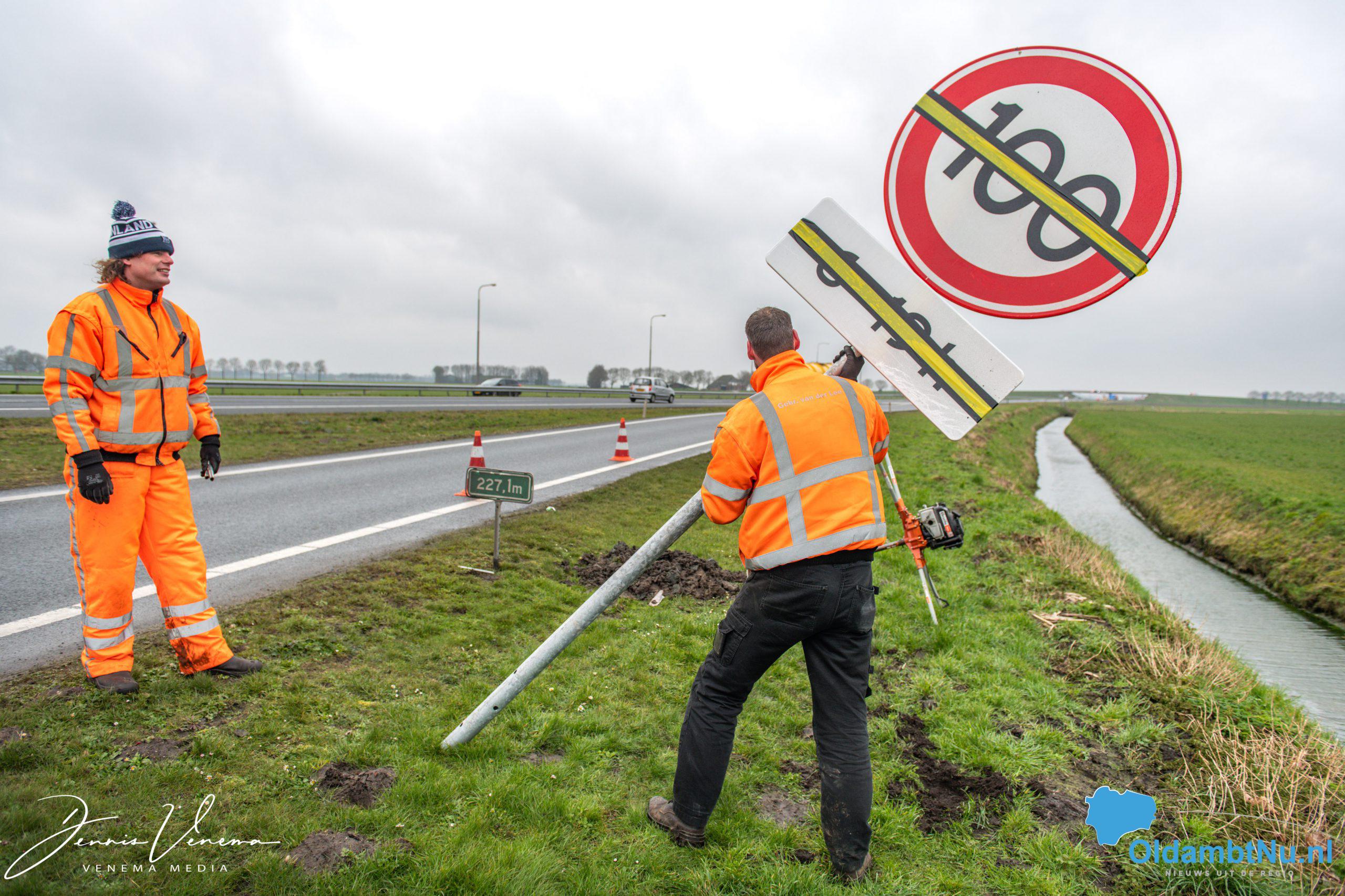Rijkswaterstaat plaatst borden 100 km/h langs A7 bij Scheemda