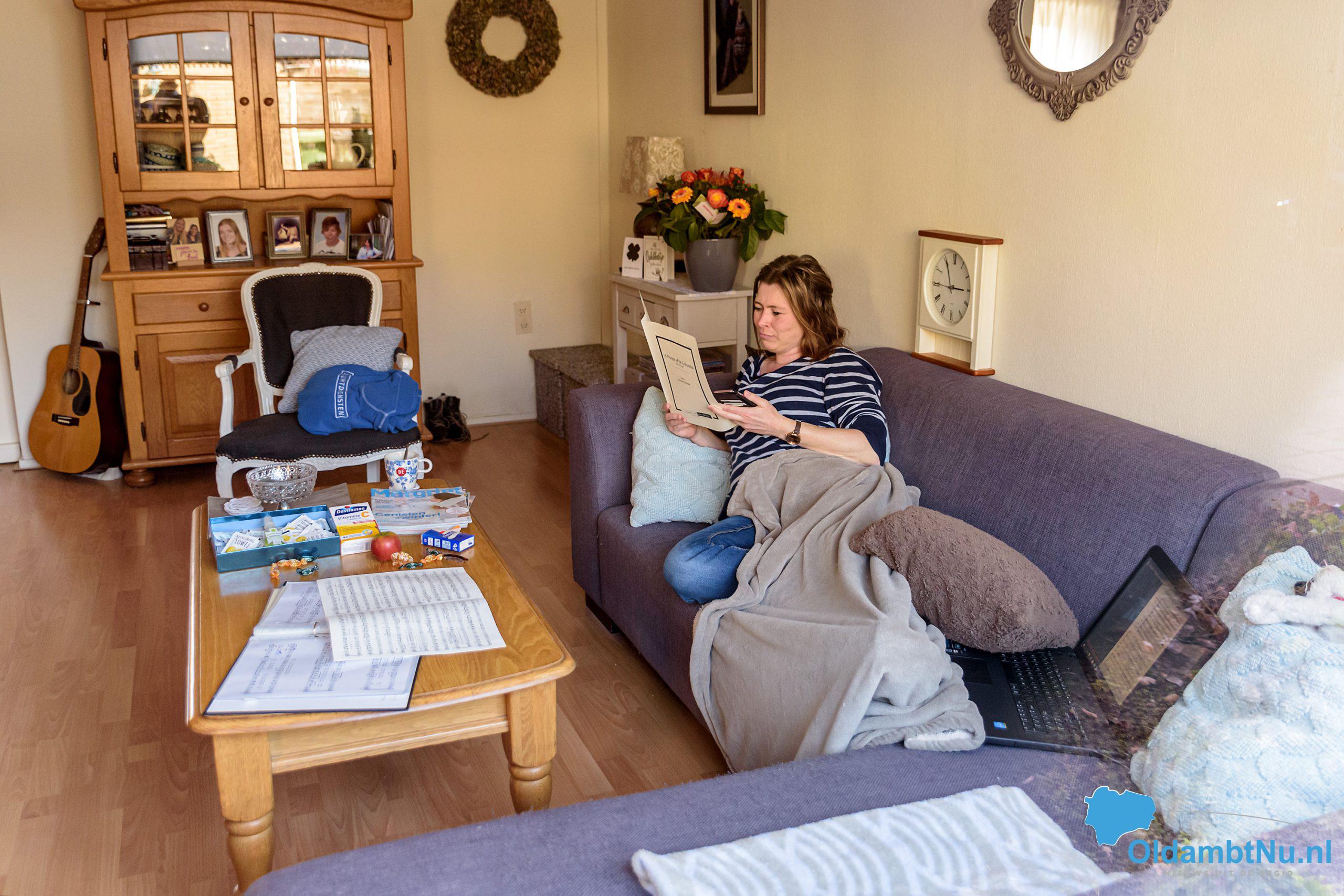 Afgelopen zaterdag was Margriet Brouwer uit Stadskanaal de eerste. Zij zat op het moment van fotograferen al 11 dagen helemaal alleen in huis met contact alleen door glas en via de telefoon of social media.