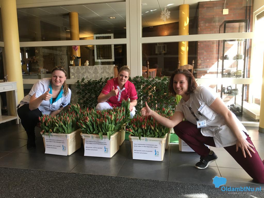 Ook bij verpleeghuizen zoals het Vondelhuys en Oldwolde werden bloemen bezorgd. Intratuin Winschoten leverde mooi bossen tulpen af met de mededeling: “Voor medewerkers en bewoners een bosje tulpen in deze bijzondere tijden. Blijf gezond, sterk en positief.”