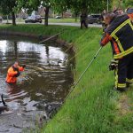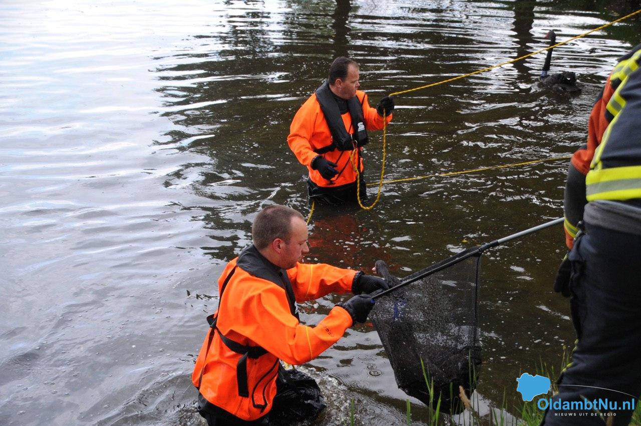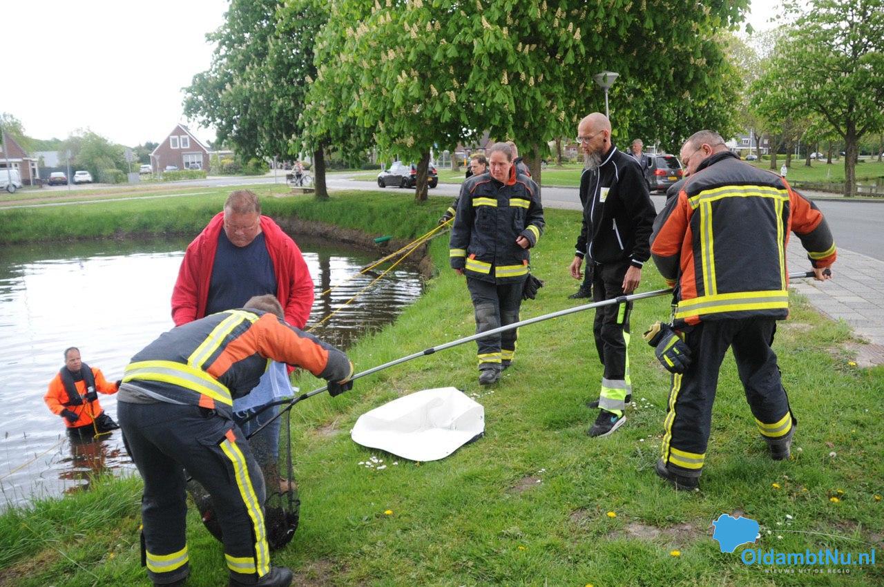 Winschoten – Brandweer Winschoten heeft zondagmiddag een gewonde zwaan uit het water gehaald aan de Blijhamsterweg in Winschoten. De zwaan was even daarvoor voor een auto gekomen, de automobilist kon de watervogel niet ontwijken.