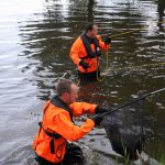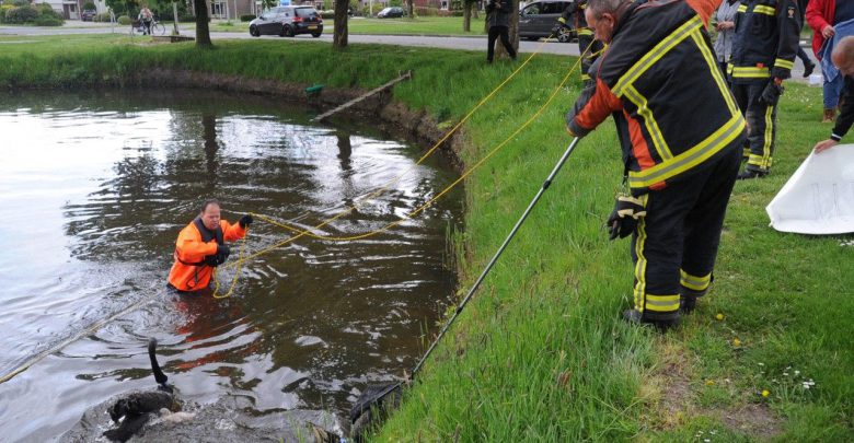 Het personeel van de dierenambulance die al ter plaatse was kon het dier niet uit het water halen en waarschuwde de brandweer. De brandweer is het water ingegaan en heeft de zwaan daarna gevangen. De zwaan is daarna overgedragen aan de dierenambulance, deze heeft de zwaan meegenomen naar een dierenarts.
