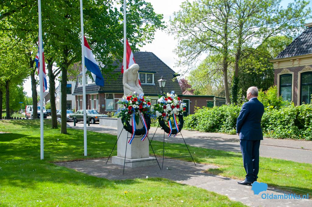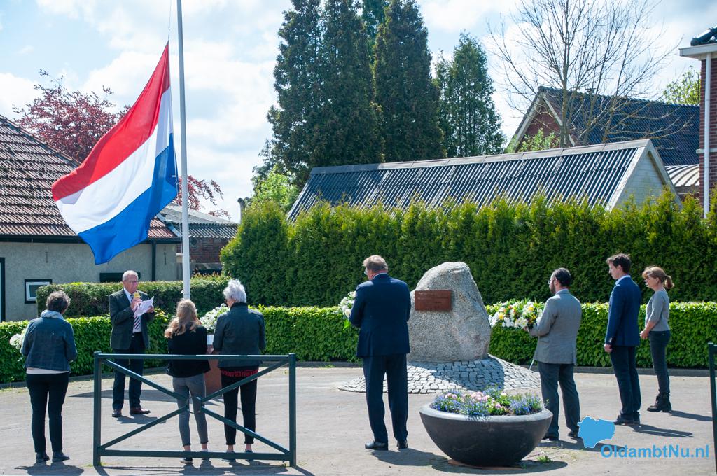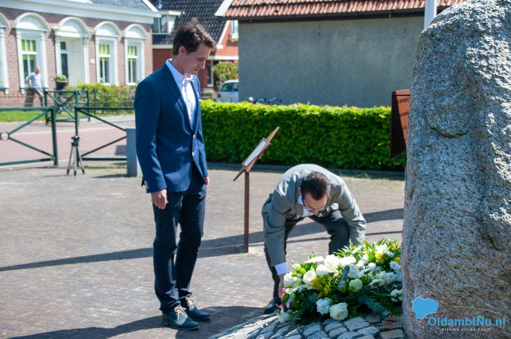 Oldambt – De herdenking dit jaar is totaal anders gegaan dan voorgaande jaren. Niet om 20:00 uur, maar de hele middag werd er bij elk momument in de gemeente Oldambt een krans neergelegd door de wethouders en door het 4 mei comité van elk dorp. Geen Last Post en matig tot geen publiek, dit alles vanwege afgelastingen in verband met het coronavirus.