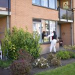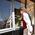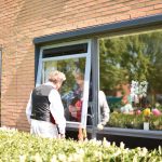 Beerta – Afgelopen donderdag kregen de bewoners van verpleegcentrum De Tjamme in Beerta bezoek voor het raam van clown Milo. De clown fietste op een versierde duo-fiets met muziek door de belevingstuin.
