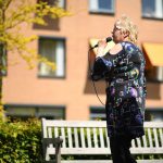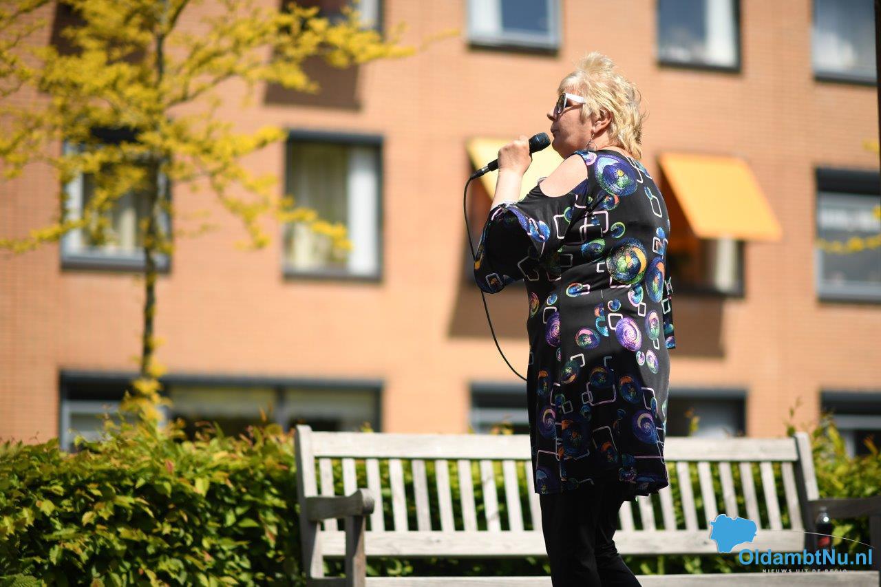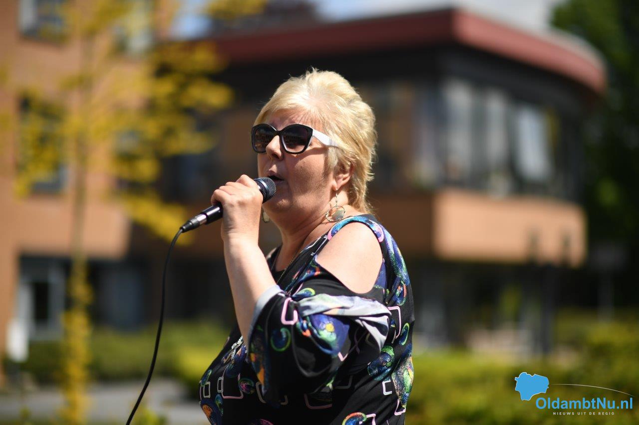 Beerta – Afgelopen maandag werden de bewoners van verpleegtehuis De Tjamme in Beerta verrast met een optreden van zangeres Baukje Nap. Ze zong verschillende meezingers waarvan de bewoners konden genieten achter het raam.