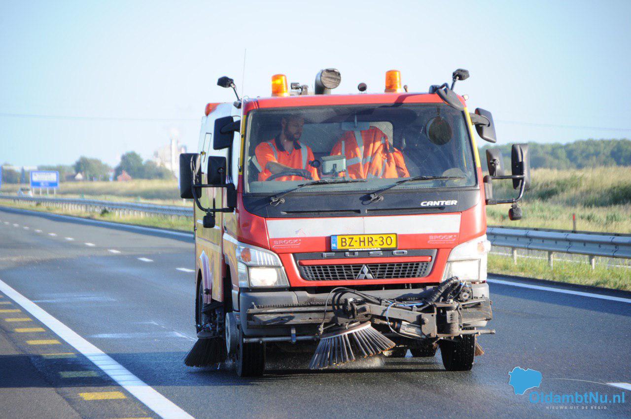Dit belandde op de weg. Om dit van het wegdek te kunnen verwijderen werd de weg donderdagavond vanaf 19:00 uur afgesloten voor het verkeer. Met trekkers en schoonmaakwagens is een kleine vijf kilometer schoongemaakt.