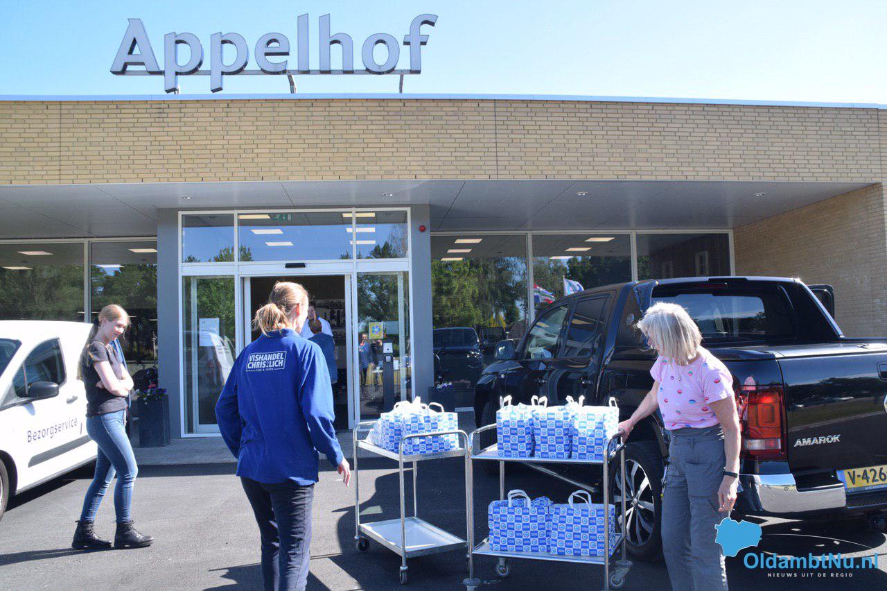 Winschoten – Donderdagmiddag werden de bewoners van afdeling de Appelhof van Oldwolde getrakteerd door Stichting Dichte Knip. In samenwerking met Vishandel Chris Lich bezorgden zij zoute haringen en bakjes kibbeling bij de hoofdingang van de Appelhof. De bewoners hebben genoten van deze traktatie.