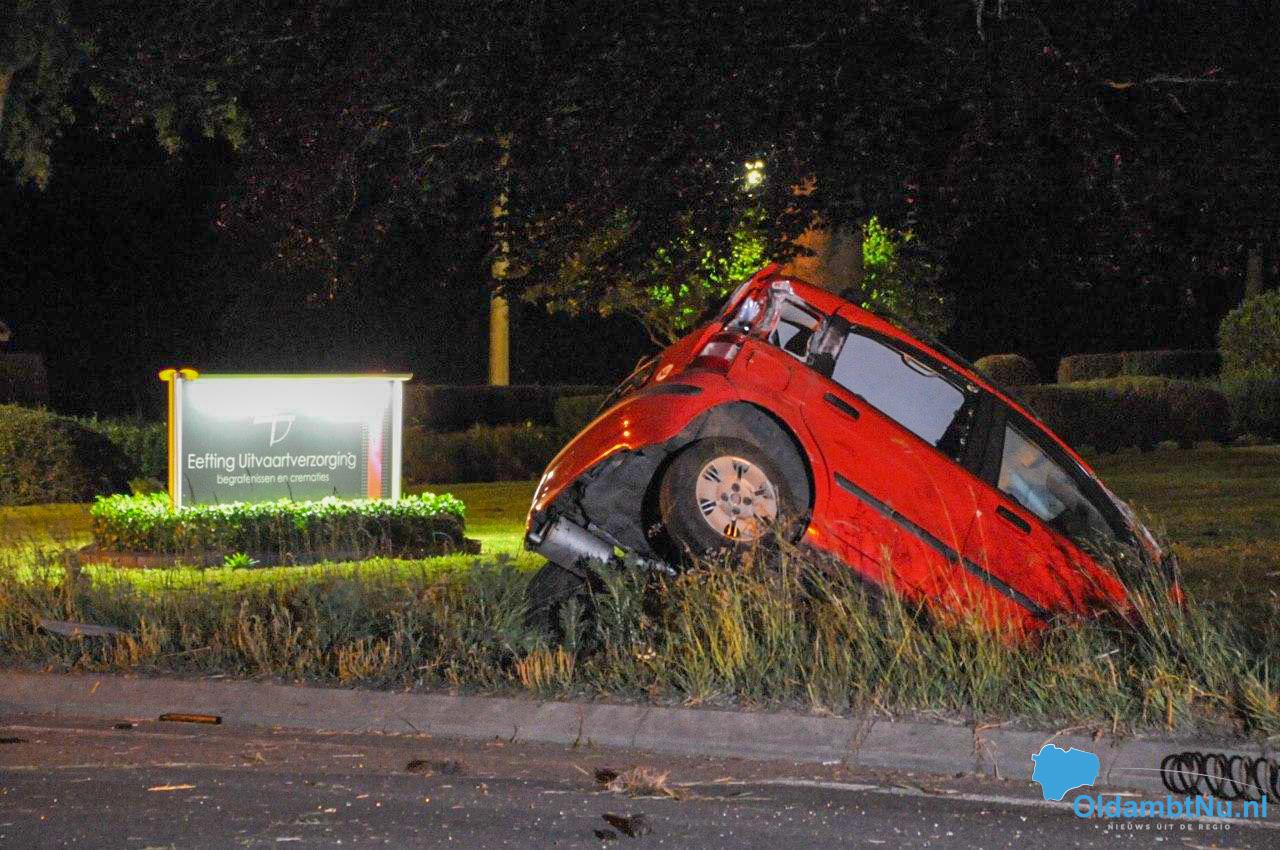 Door het ongeval raakte de auto in een greppel langs de weg. Een bergingsbedrijf heeft de fors beschadigde auto weggesleept.