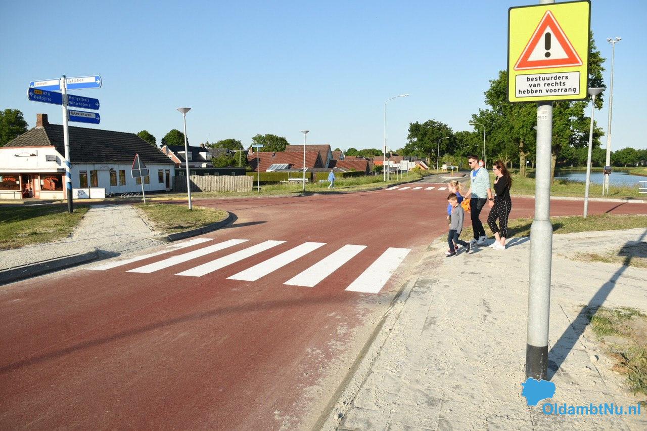 Naast de nieuwe zebrapaden is de weg verhoogd en is er een rood vlak aangebracht. Om de 30-kilometerstatus van de Oude Rijksweg te accentueren, is de weg anders ingericht. Zo stopt de bus nu op de weg en niet meer in een haltekolom.