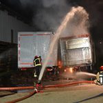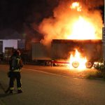 Wel zijn twee trailers en de truck compleet verwoest door de brand. Er werd om 00.58 uur opgeschaald naar ‘middel brand’, om zo een extra blusvoertuig ter plaatse te laten komen. Dit werd gedaan om de hoogwerker te voorzien van voldoende bluswater.