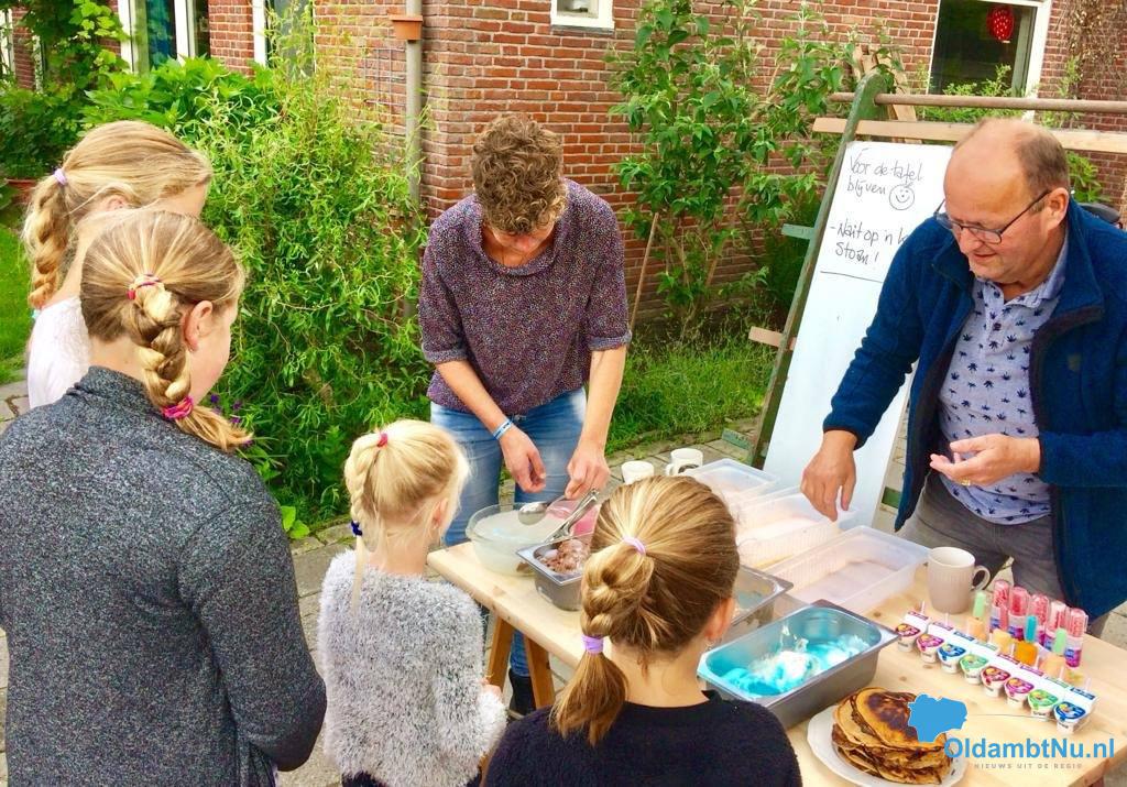 Scheemda – Bert van Vondel uit Scheemda nodigde afgelopen zaterdag kinderen uit de buurt van de Lijsterstraat uit om gratis een ijsje te komen scheppen.