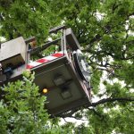 De brandweer heeft eerst water in de boom gespoten om het beestje er uit de krijgen maar dit hielp niet. De hoogwerker werd uiteindelijk opgeroepen om het beestje eruit te halen.