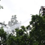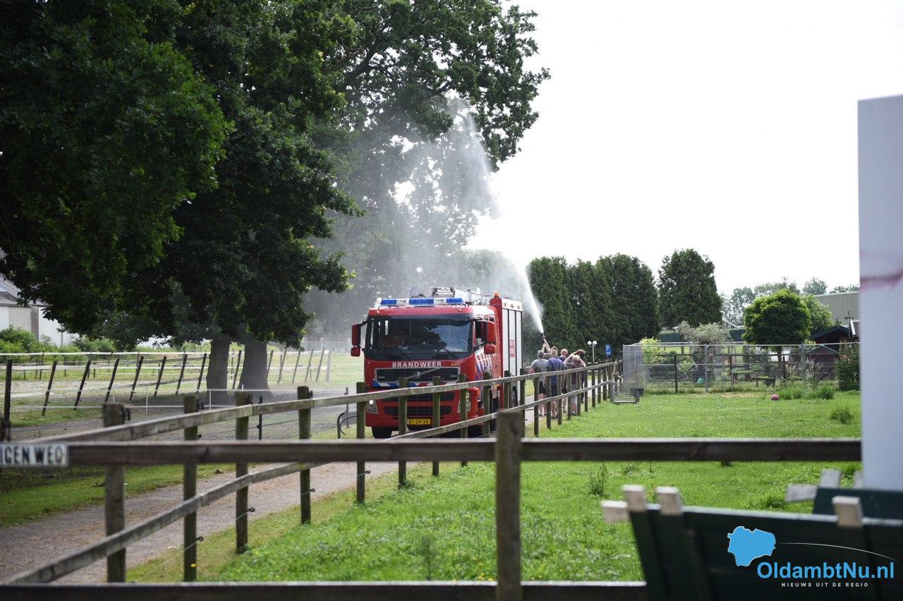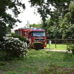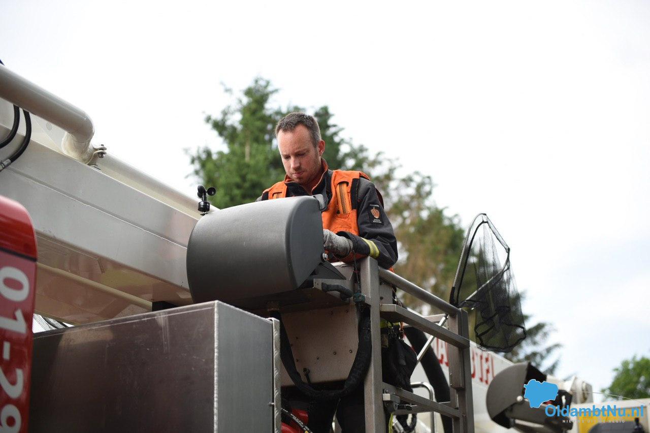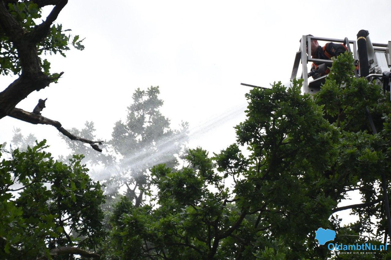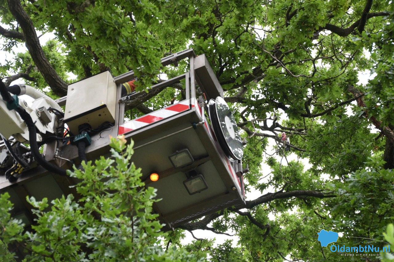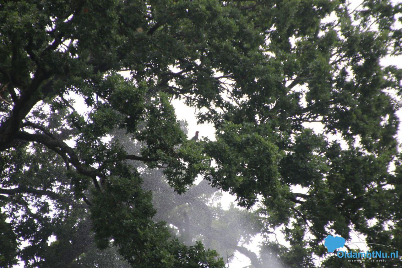 De brandweer heeft eerst water in de boom gespoten om het beestje er uit de krijgen maar dit hielp niet. De hoogwerker werd uiteindelijk opgeroepen om het beestje eruit te halen.