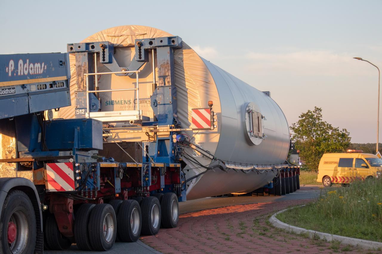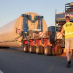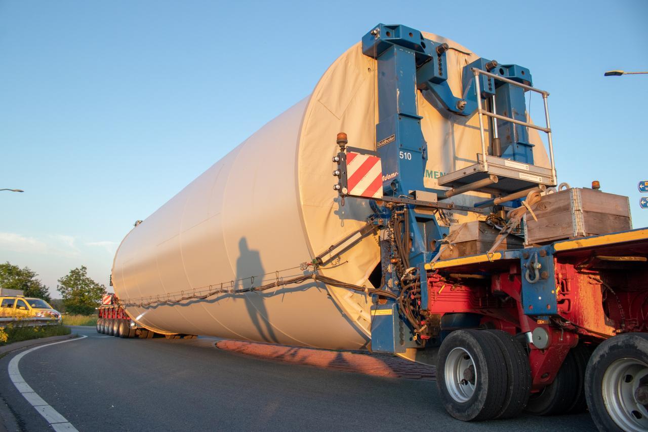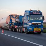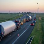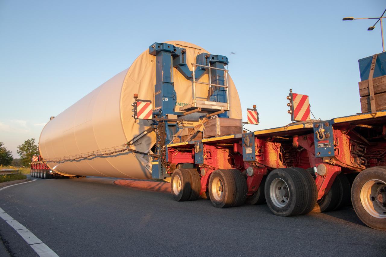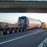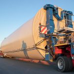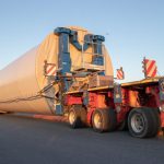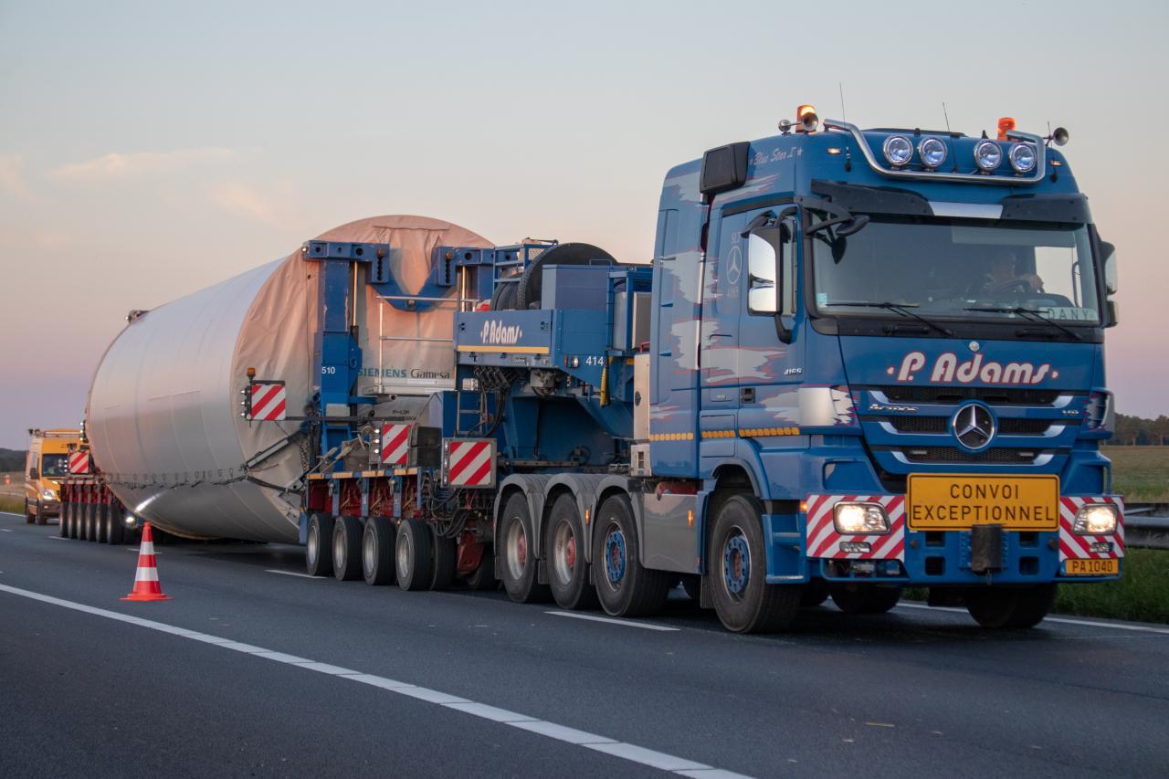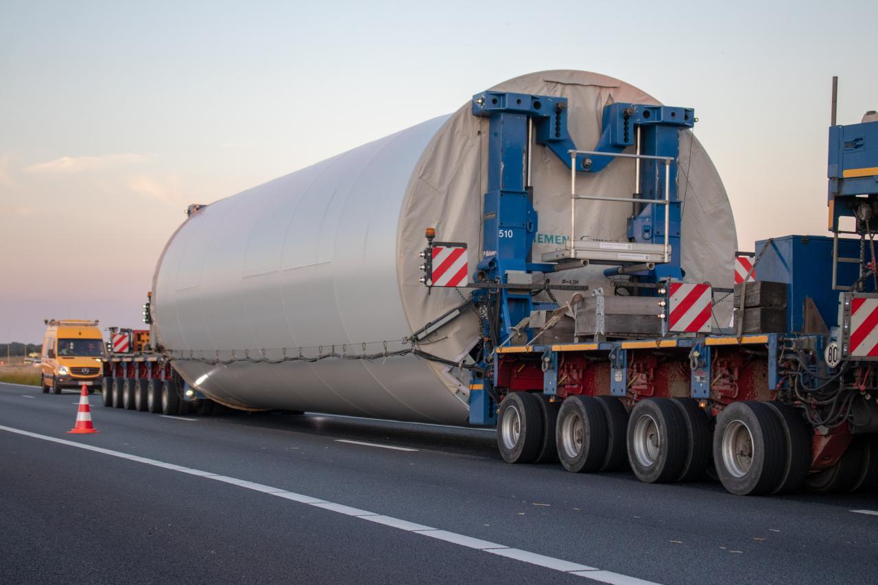 Eemshaven/ Scheemda/ Zuidbroek – Afgelopen dinsdag- en donderdagavond zijn de eerste transporten voor het Windpark N33 per vrachtauto vanaf de Eemshaven naar de locatie gebracht aan de N33 en de A7 nabij Zuidbroek. De mastdelen worden in meerdere etappes vervoerd naar hun eindbestemming. De funderingen van het project zijn al een tijd klaar.