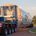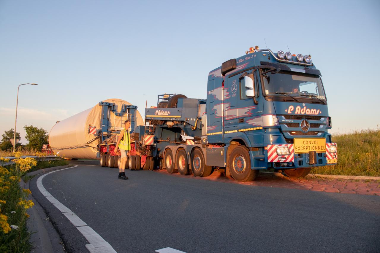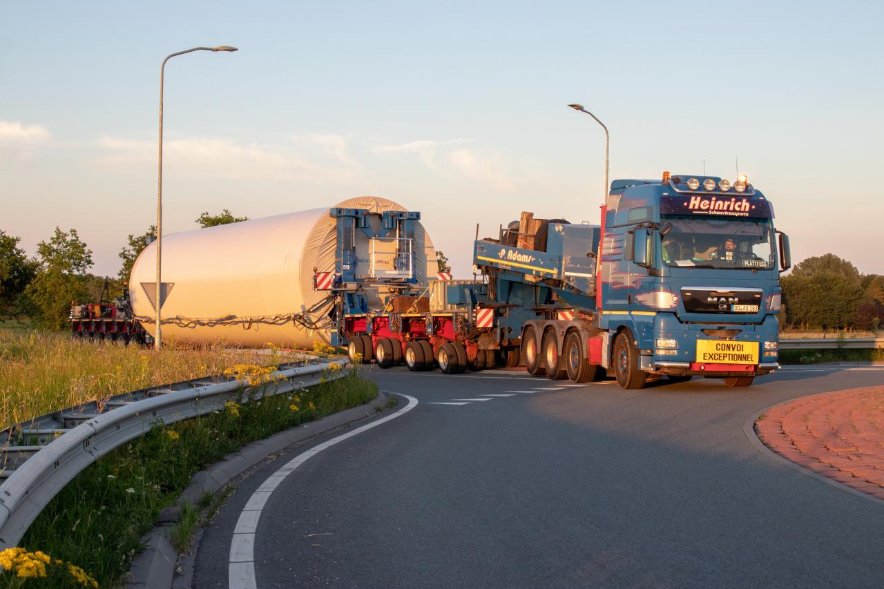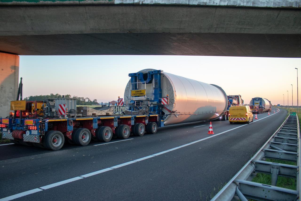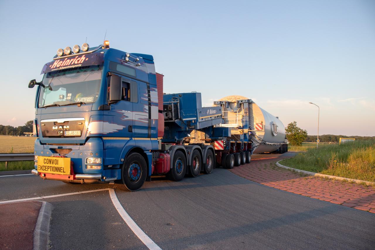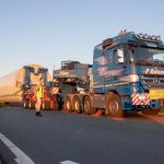 Eemshaven/ Scheemda/ Zuidbroek – Afgelopen dinsdag- en donderdagavond zijn de eerste transporten voor het Windpark N33 per vrachtauto vanaf de Eemshaven naar de locatie gebracht aan de N33 en de A7 nabij Zuidbroek. De mastdelen worden in meerdere etappes vervoerd naar hun eindbestemming. De funderingen van het project zijn al een tijd klaar.
