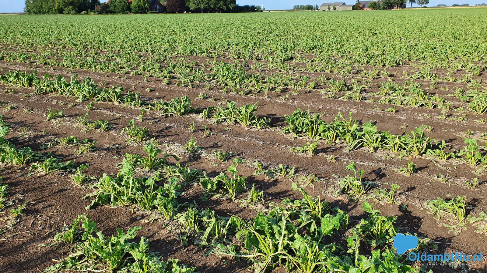 Cors laat op Twitter weten dat er grote schade is aan zijn bietenperceel nabij Finsterwolde. “Zware hagelbui met gigantische hagelstenen heeft grote schade aangericht in ons bietenperceel. Een half uur na de bui lagen er nog hagelstenen. Drama….!”