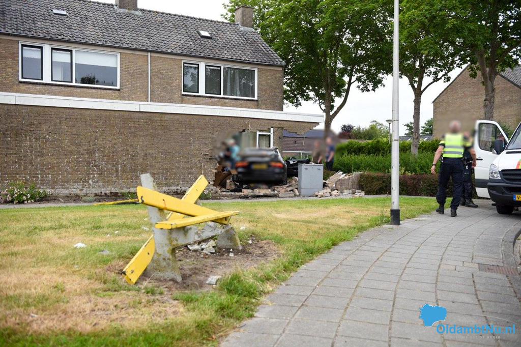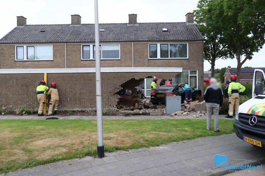 Auto raakt van de weg en rijdt dwars door schuurtje
