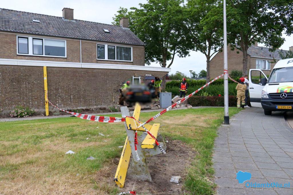 De twee inzittenden zijn aanspreekbaar en worden gecontroleerd door het ambulance personeel. Hoe het ongeval heeft kunnen gebeuren is nog niet bekend.