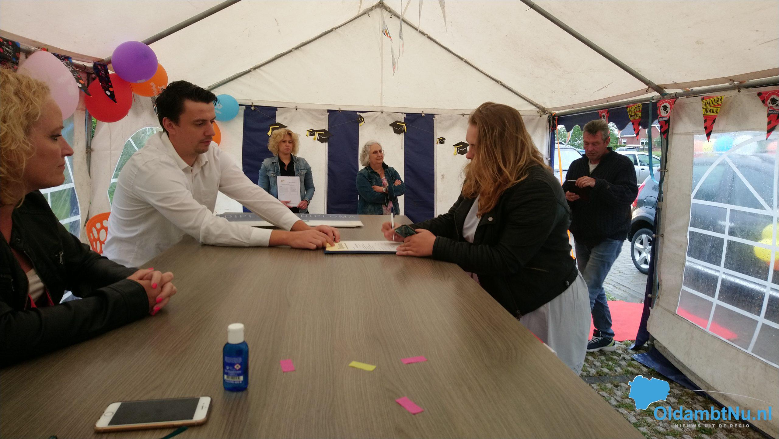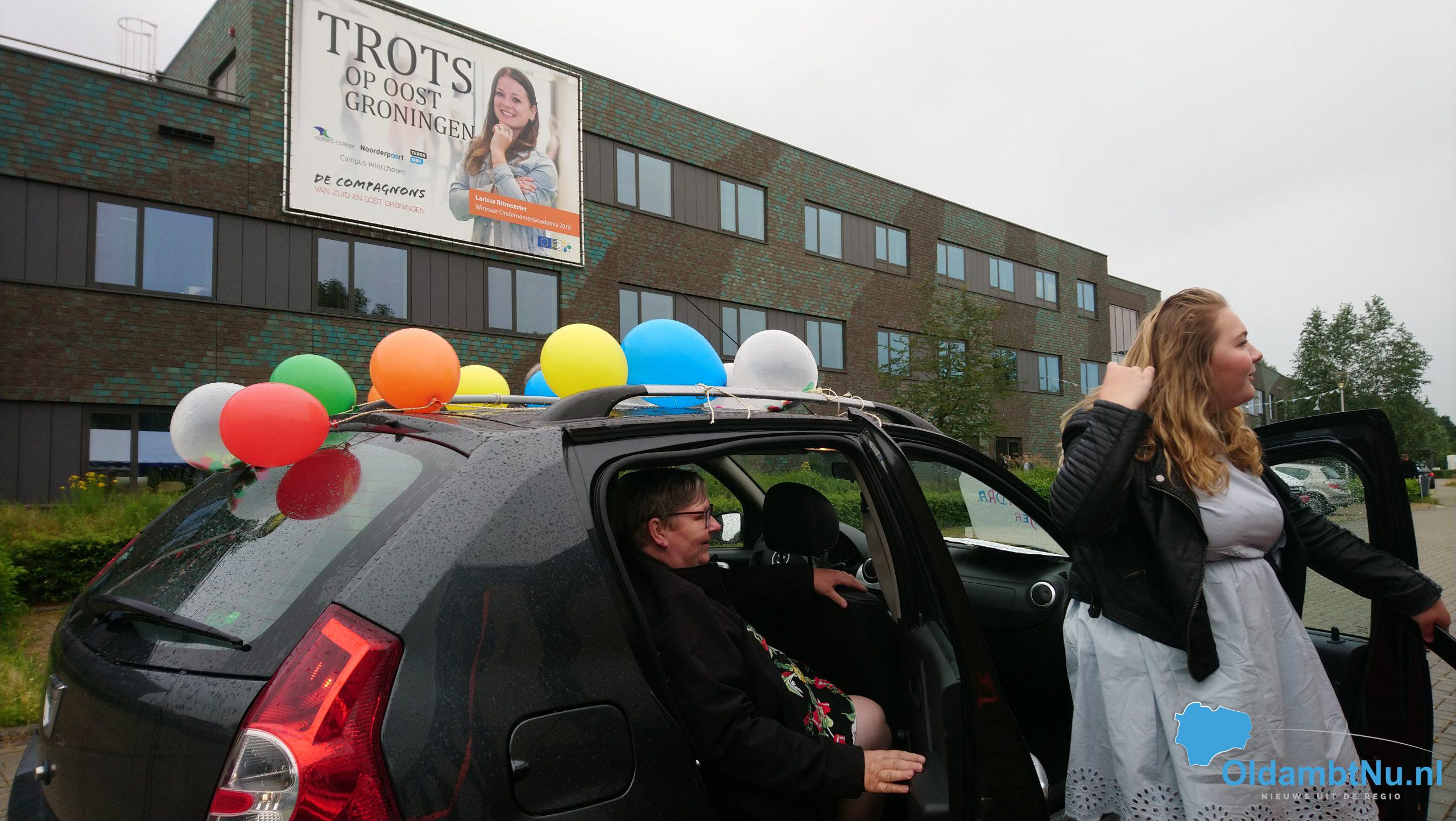 Winschoten – Geslaagde leerlingen bb, kb en gl van het Dollard College, vestiging Campus Winschoten, hebben hun diploma op een bijzondere manier uitgereikt gekregen. Dinsdagavond 30 juni kleurde het terrein van Campus Winschoten zich in feestelijke sferen. De school organiseerde een drive-in diplomering.