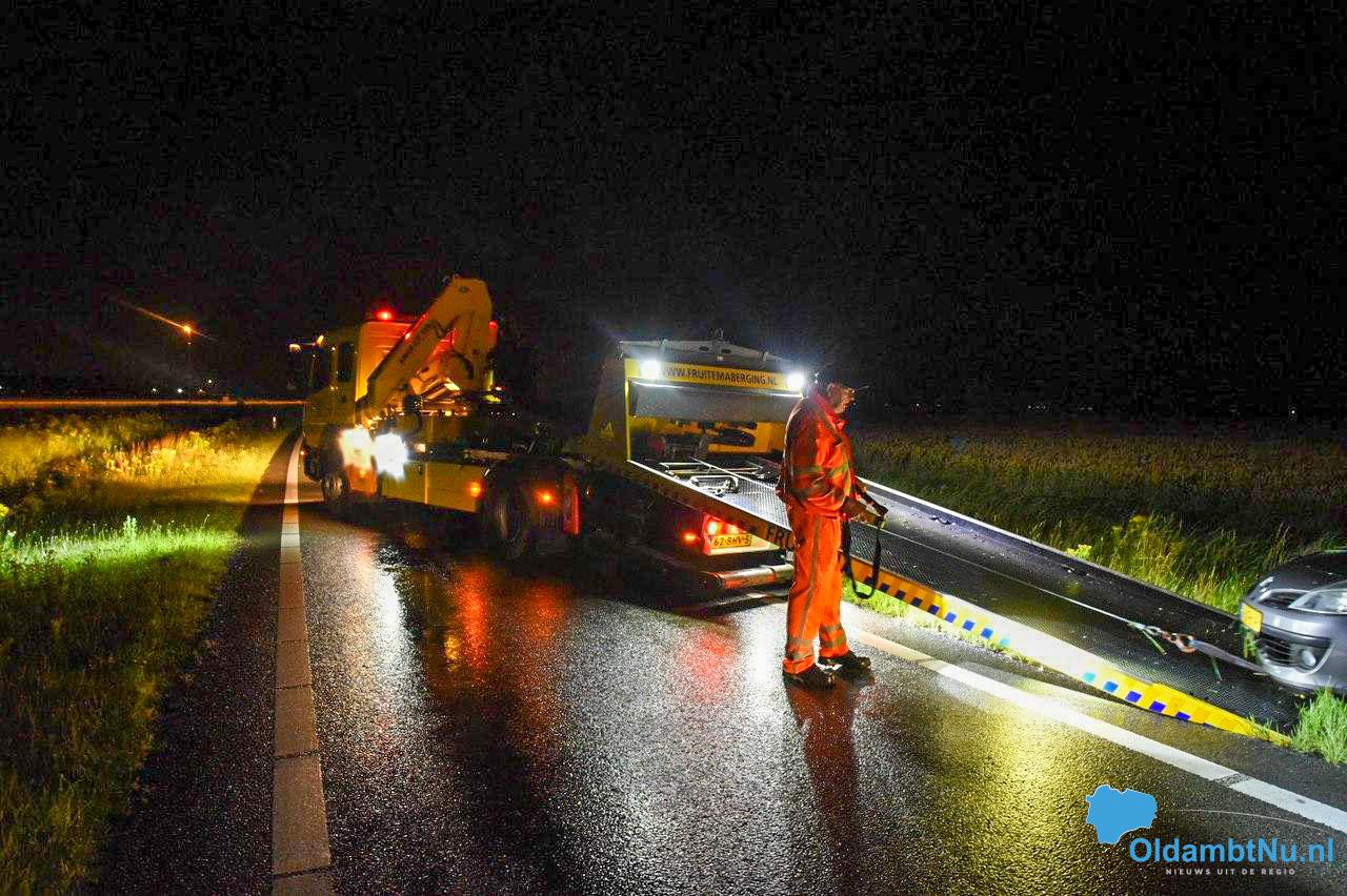 Het ongeval gebeurde net na middernacht. Een ambulance rukte samen met de politie uit. De bestuurster van het voertuig is met onbekende verwondingen overgebracht naar het ziekenhuis. Berger Fruitema kwam ter plaatse om het voertuig op te halen.