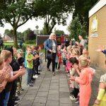 Na een feestelijk onthaal op het schoolplein, was het tijd voor optredens door de kinderen in alle klassen. Van iedere klas kreeg ze een zelfgemaakt cadeau dat te maken had met koken en bakken.