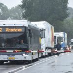 De slagbomen blijven door de storing naar beneden. Een monteur is onderweg om de storing op te lossen.