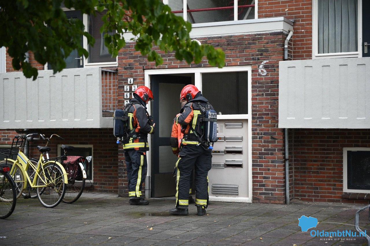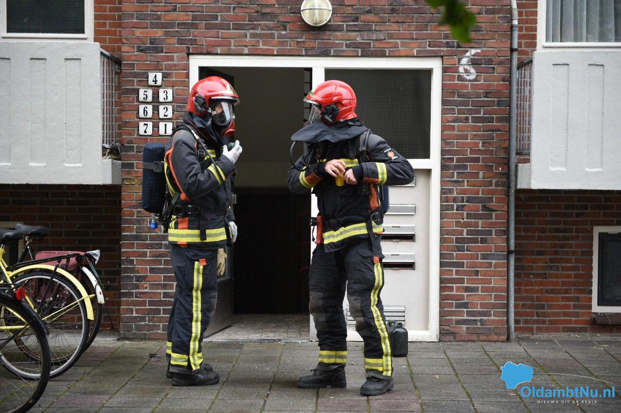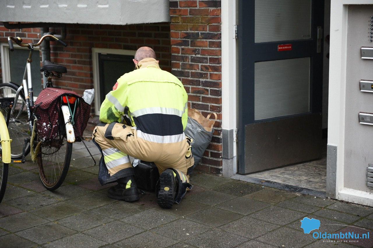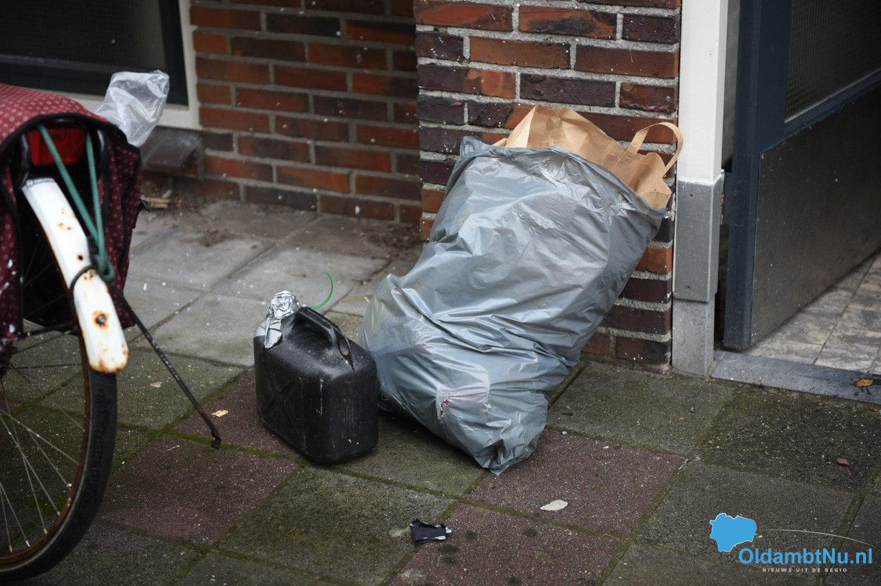 Toen de brandweer ter plaatse kwam bleek er in een portiek een vreemde lucht te hangen. De brandweer heeft een jerrycan en een vuilniszak uit de portiek gehaald.