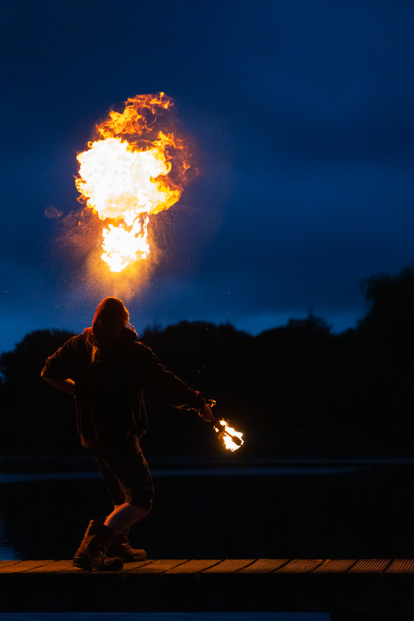 De veiligheid staat voorop bij het vuurspuwen. De vuurspuwers worden bijgestaan door hun buddy’s Tony, Denise en Amos. Het is een hechte vriendengroep en dat zie je als ze bezig zijn, wat een mooi samenspel! .