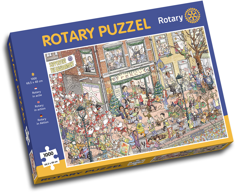 De puzzel van 1000 stukjes is te bestellen via: https://www.rotary.nl/winschoten/puzzel/ . In een van de dozen zit een gouden Rotary-logo verpakt. Wie dit aantreft, ontvangt 500 euro om te besteden aan een goed doel naar eigen keuze.