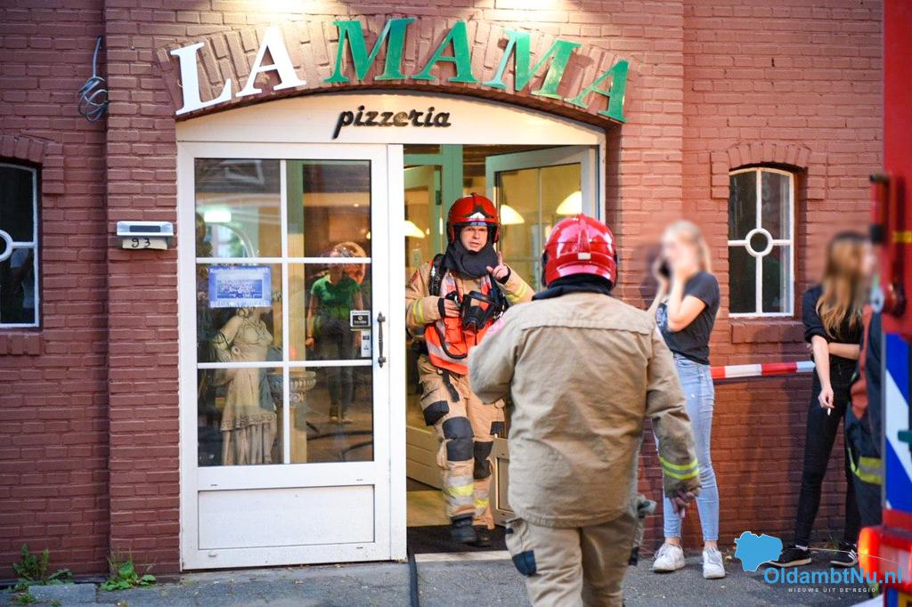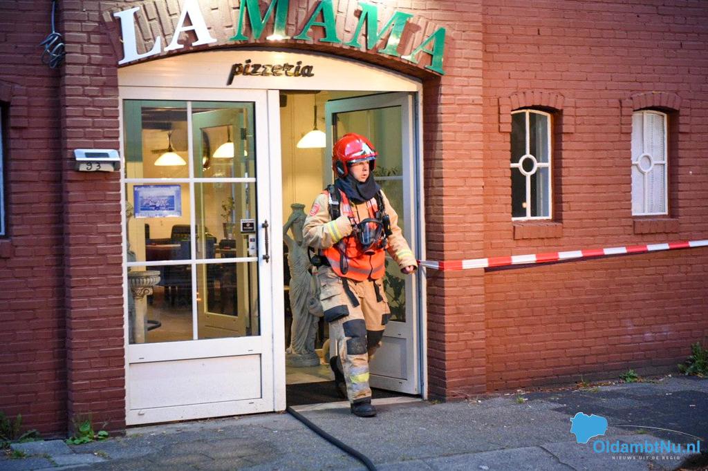 Bij aankomst van de brandweer hebben de brandweerlieden bij een woning een deur geforceerd waarna ze op verkenning zijn gegaan. In deze woning kon de brandweer geen brand ontdekken. Hierna heeft de brandweer bij de pizzeria binnen gekeken of daar de brand was.