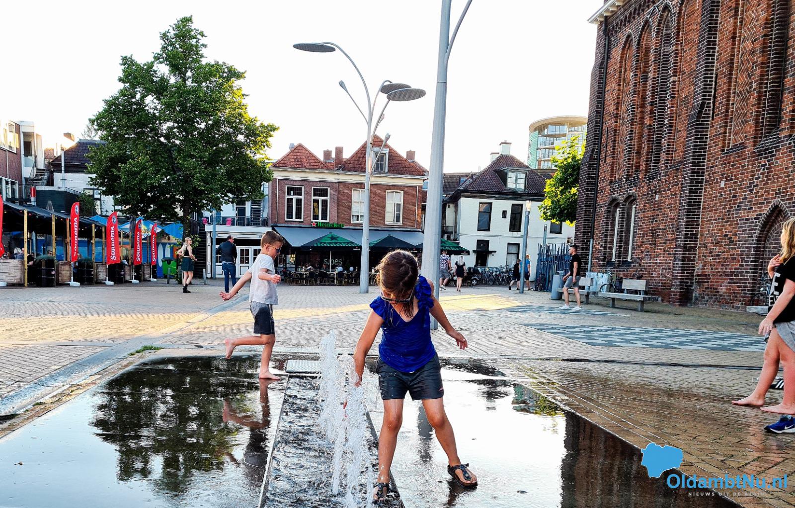 Winschoten – Spelende kinderen met het water op het Marktplein in Winschoten zorgde voor deze leuke foto. Afgelopen vrijdagavond kwam fotograaf Frans Stegeman dit vrolijke tafereel tegen en legde het vast.